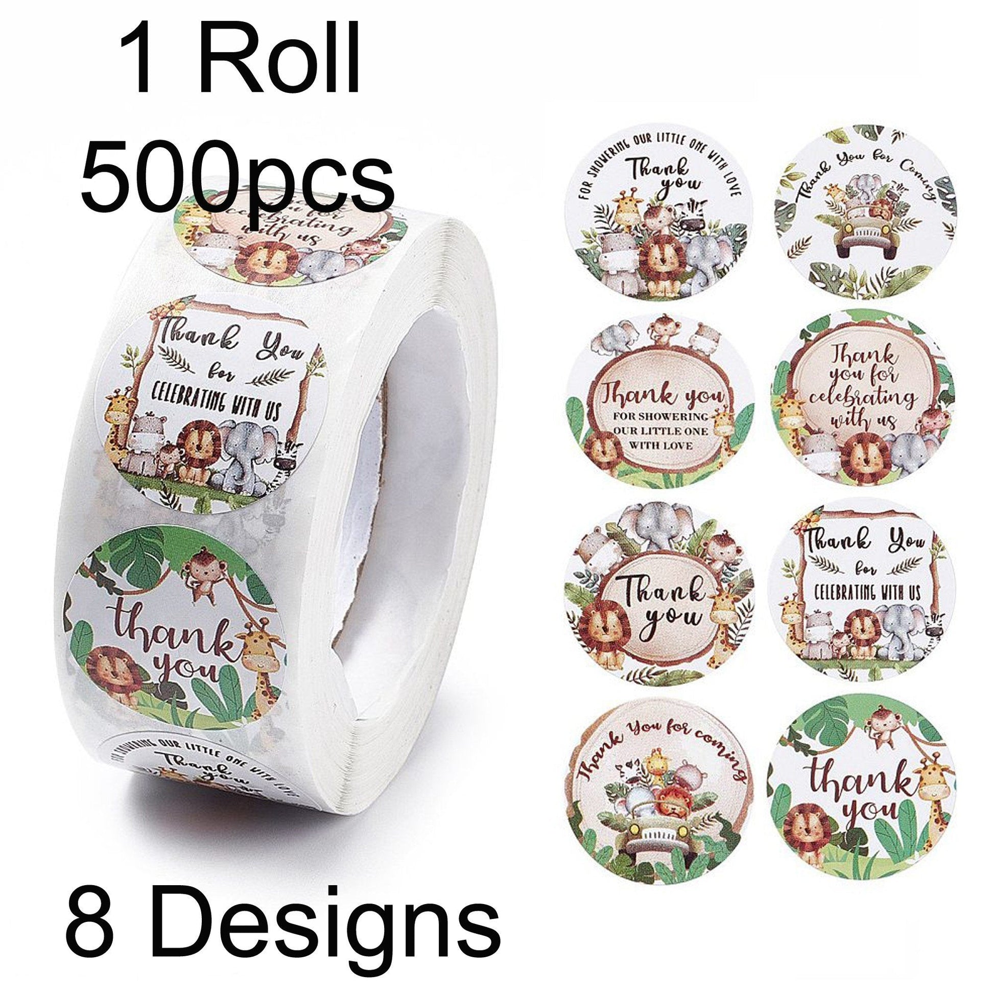 1 Roll 500pcs Baby Shower Thank you Jungle Animals Sticker lable 4 Patterns 25mm