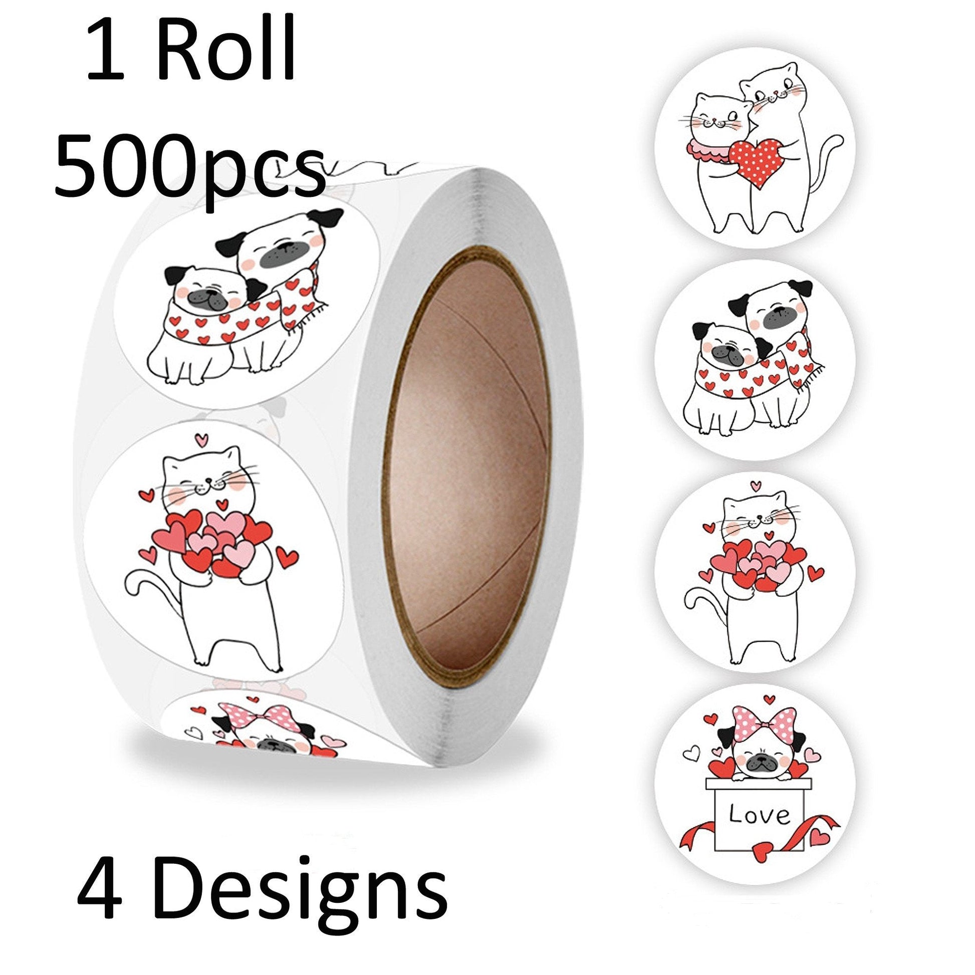 1 Roll 500pcs Cats & Dogs Valentines Day Self Adhesive Paper Sticker Labels 25mm