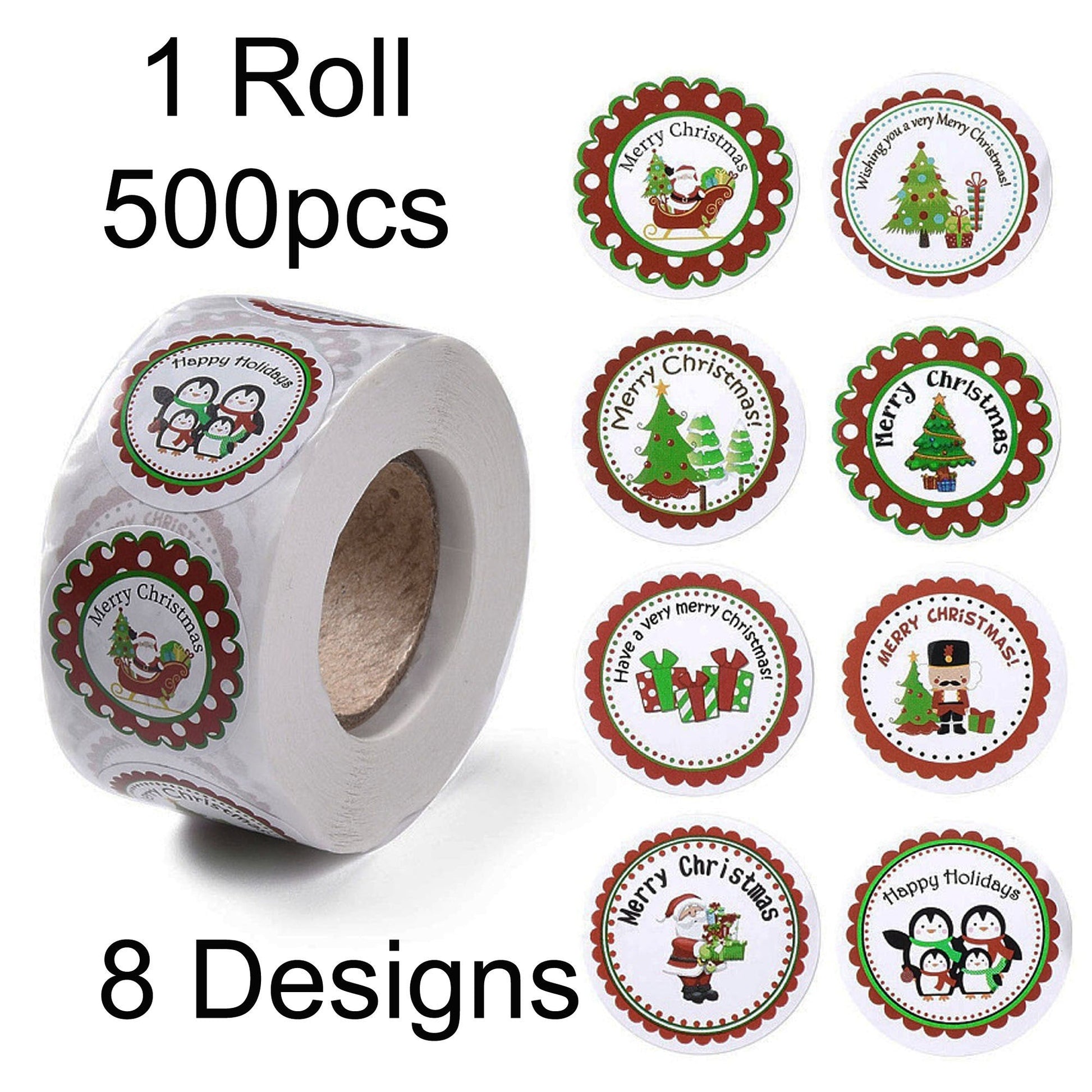 1 Roll 500pcs Merry Christmas Round Self Adhesive Paper Stickers 25mm