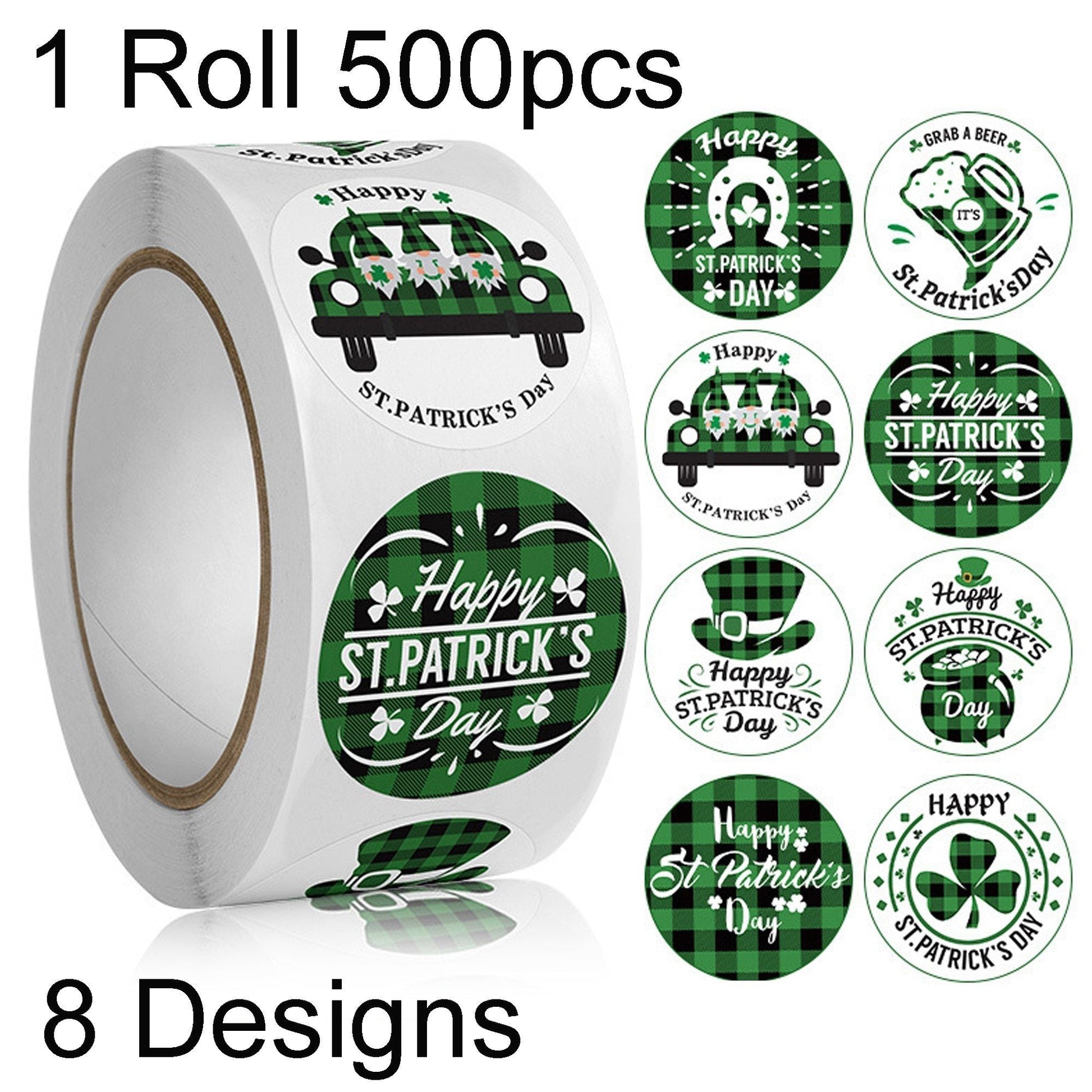 1 Roll 500pcs Saint Patricks Day Green Gingham Sticker Labels Self Adhesive 25mm