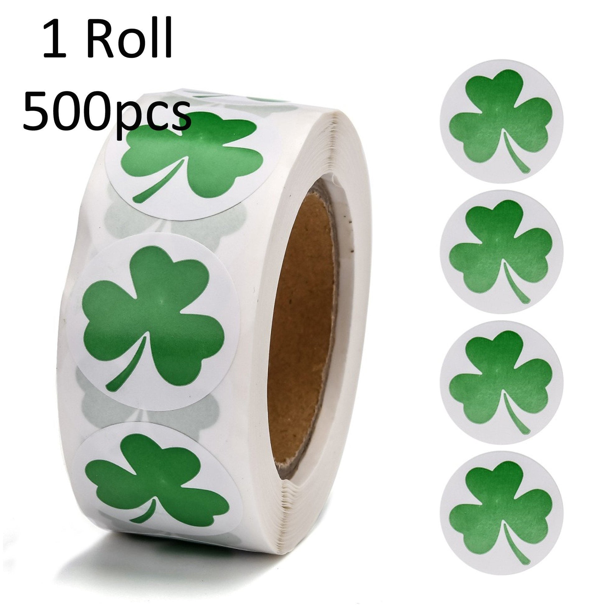 1 Roll 500pcs St Patricks Day Shamrock Clover Leaf Paper Sticker Labels 25mm