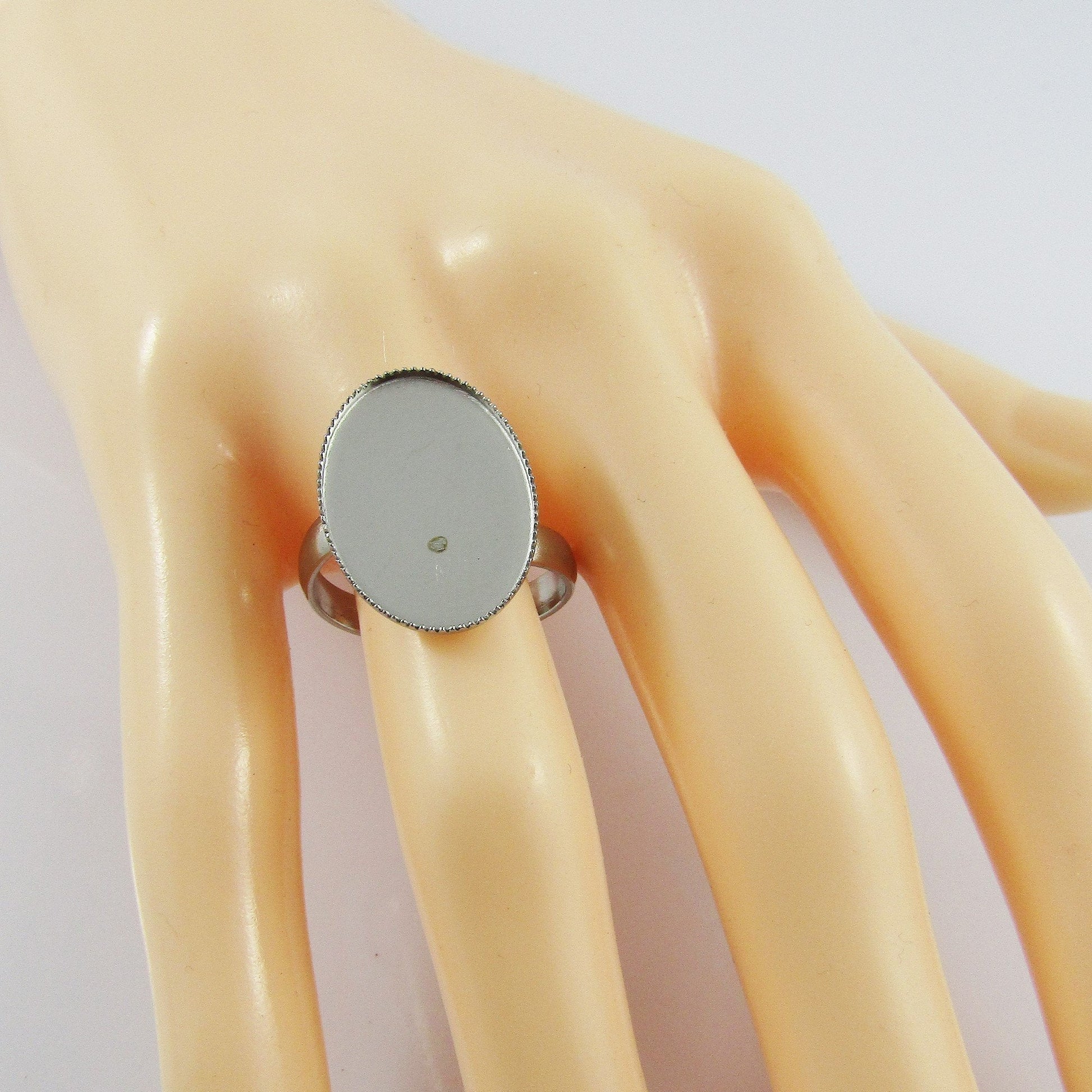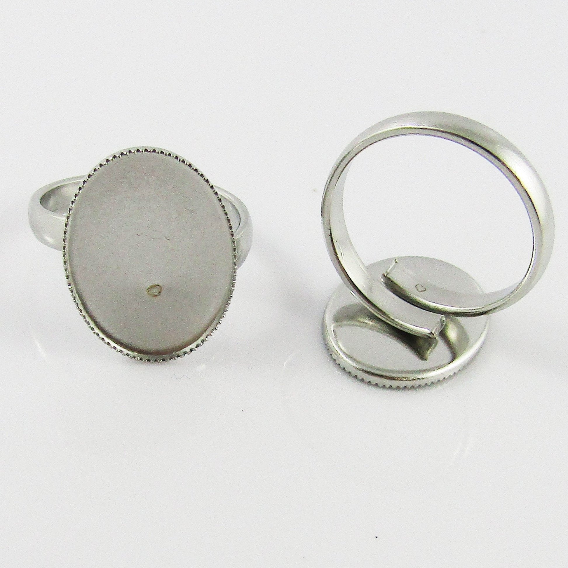 10pc DIY Ring Base with VERTICAL OVAL Cabochon Setting Fit 18x13 Cabs SS