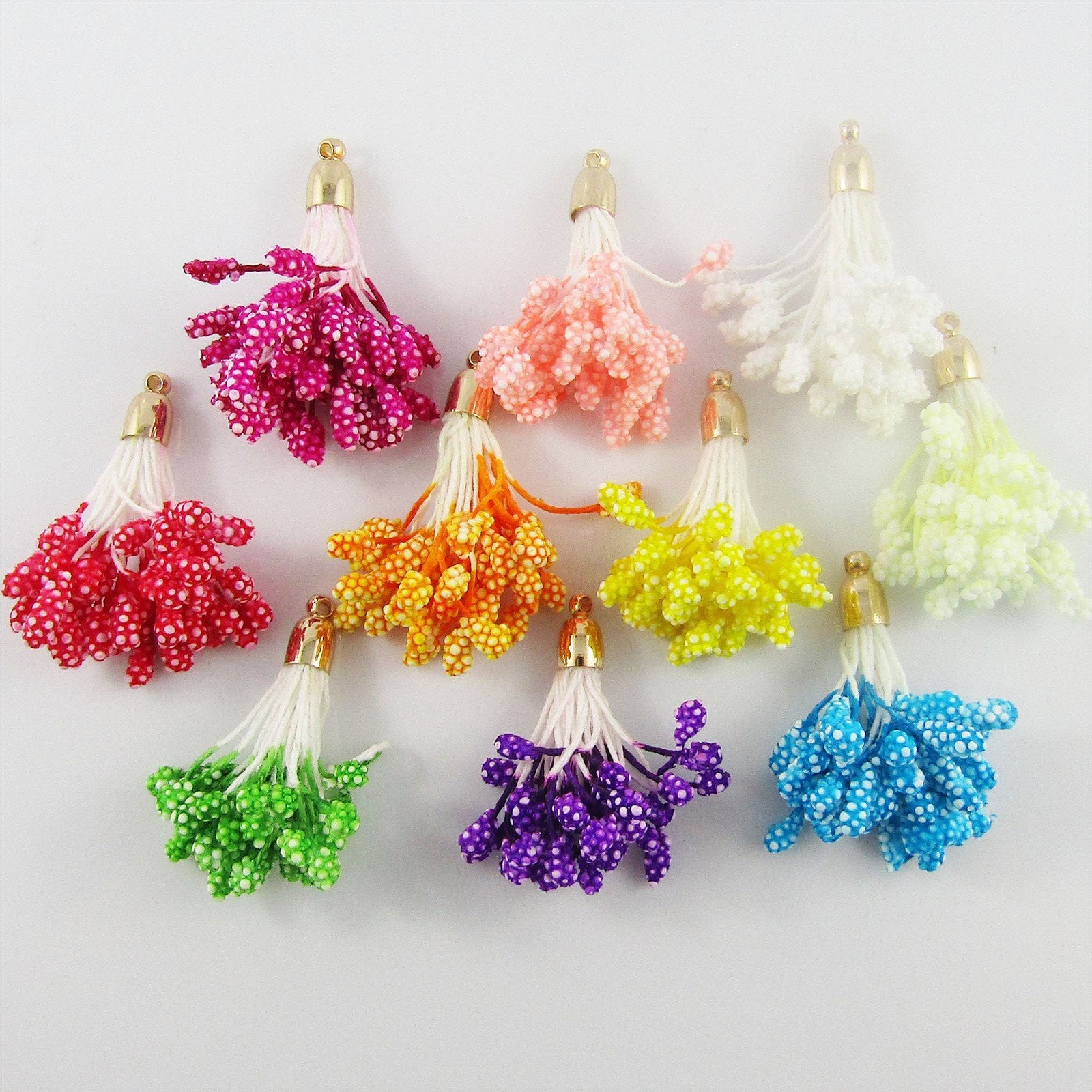 10pce Cotton & Foam Berry Tassel with Brass Cap 37mm Pick Colour Earrings etc