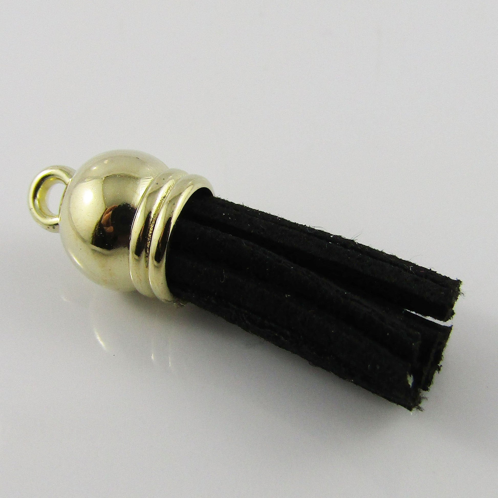10pce Faux Suede Tassel 33-35mm CCB Acrylic Gold Cap Black