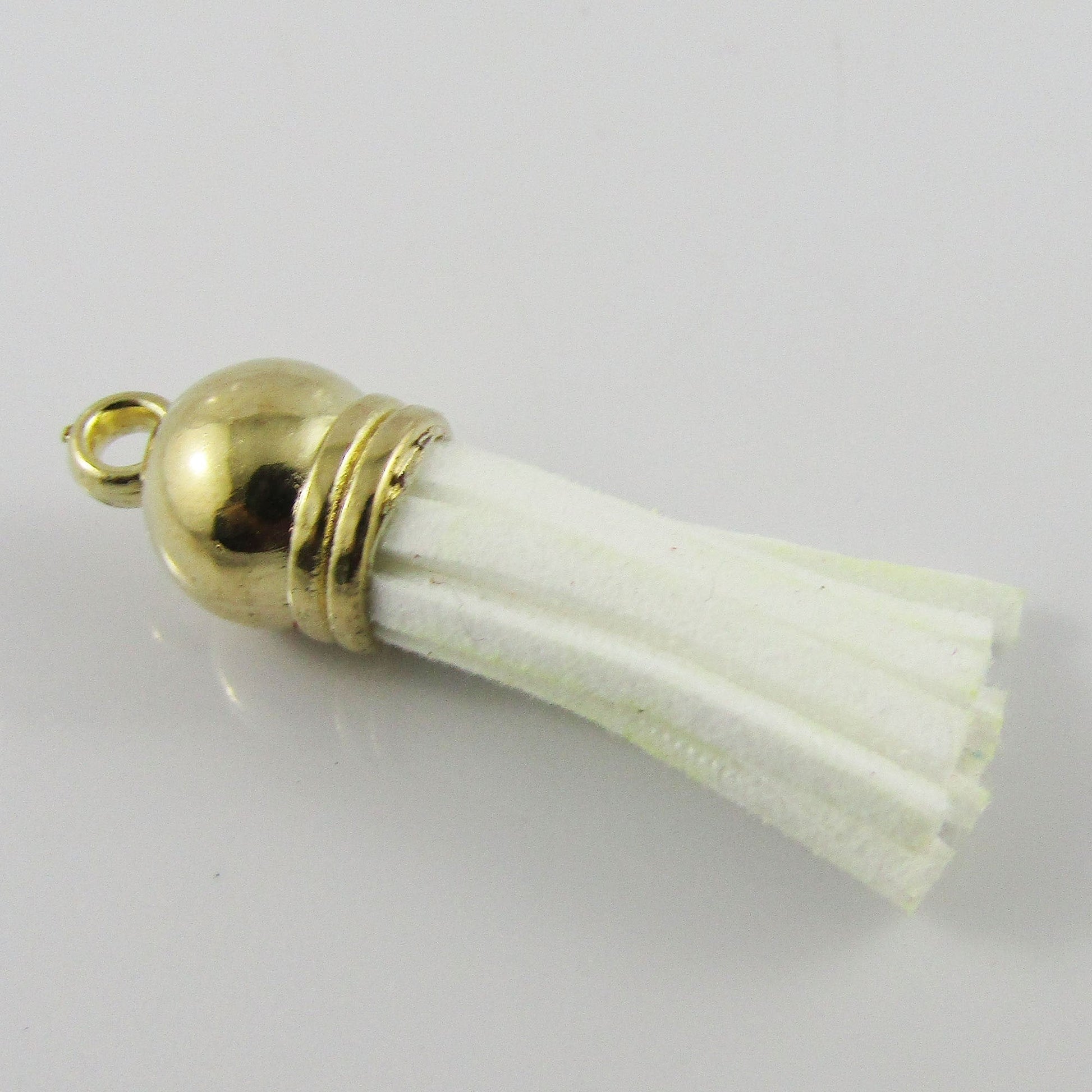 10pce Faux Suede Tassel 33-35mm CCB Acrylic Gold Cap White