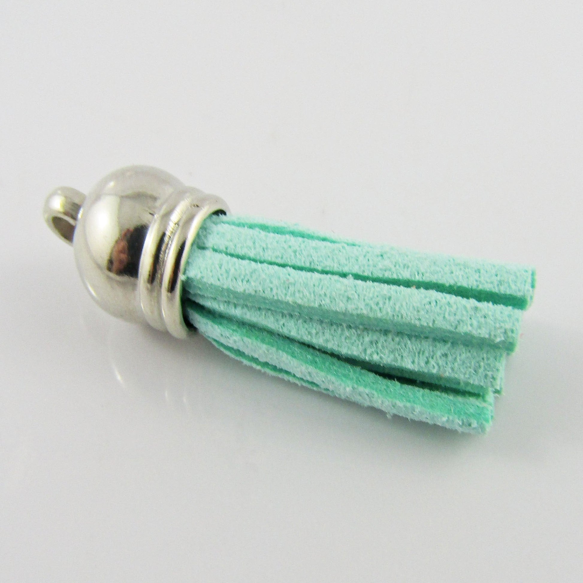10pce Faux Suede Tassel 35-37mm CCB Acrylic Cap Aqua Colour Accessory
