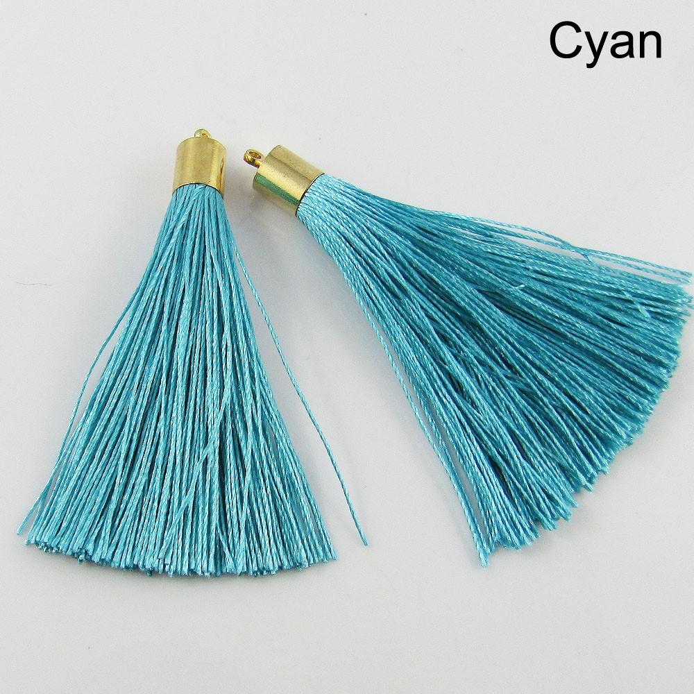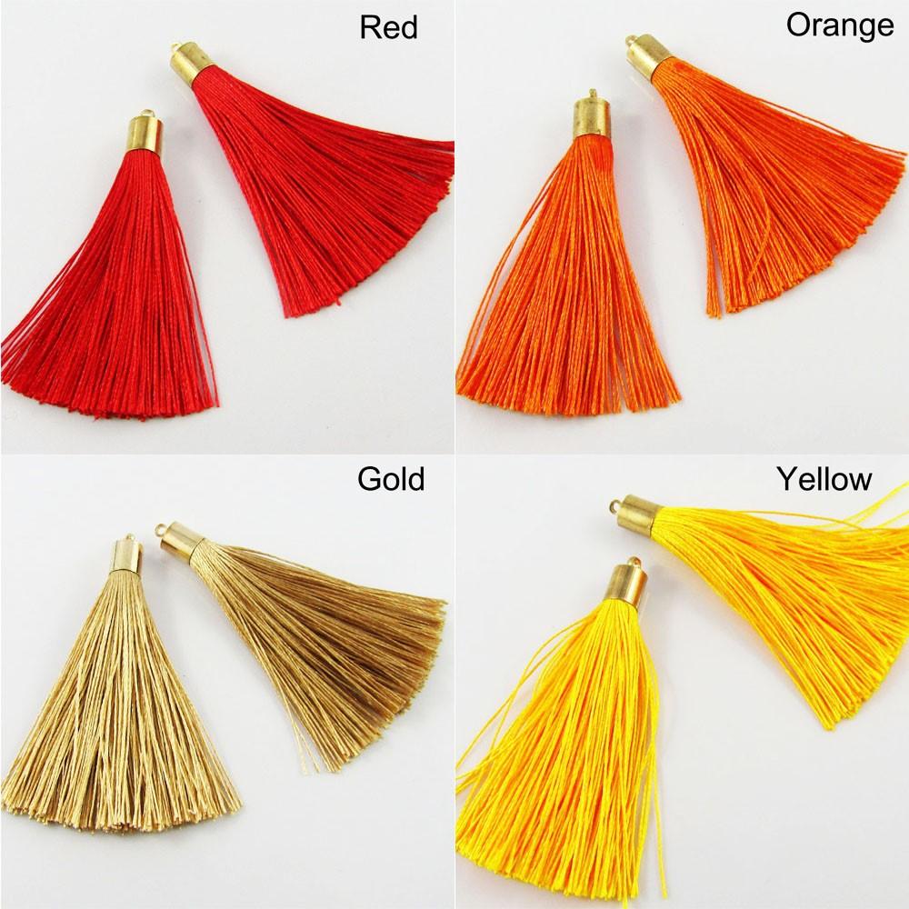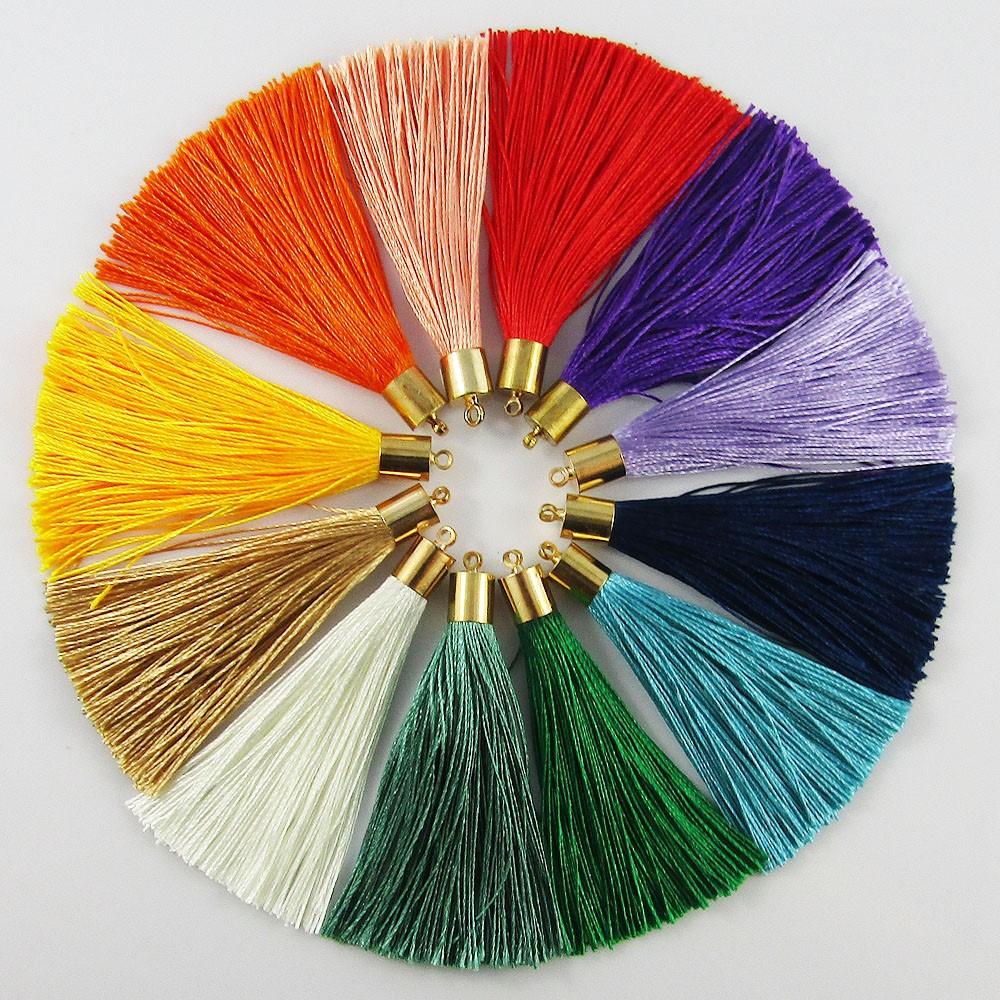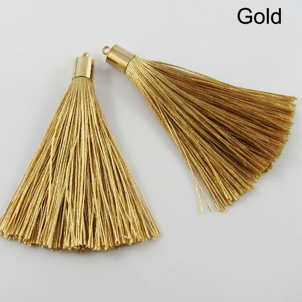 10pce Silky Polyester Tassel with Gold Alloy Cap 60mm Pick Colour Earrings etc