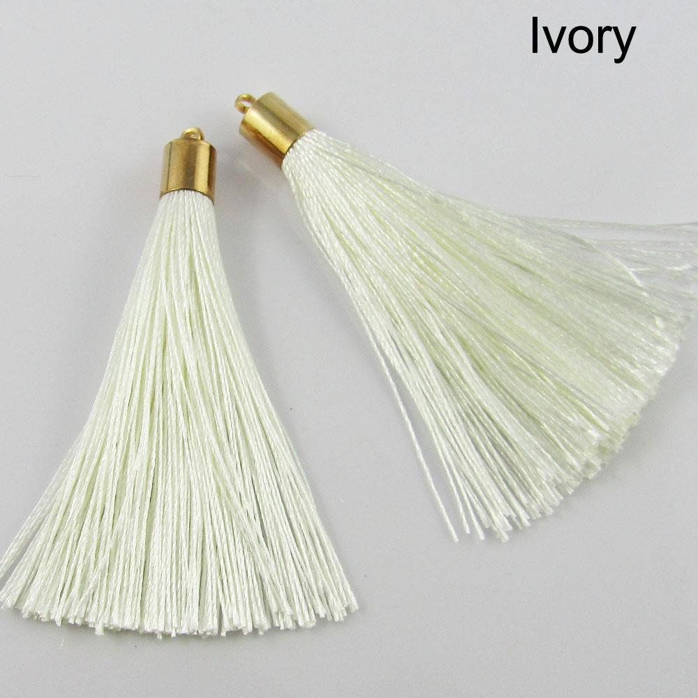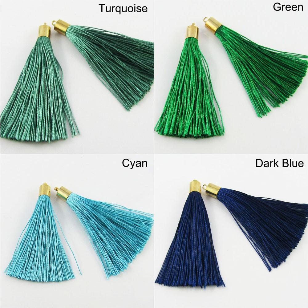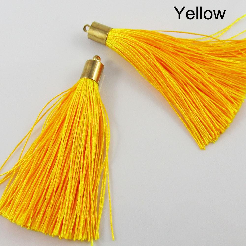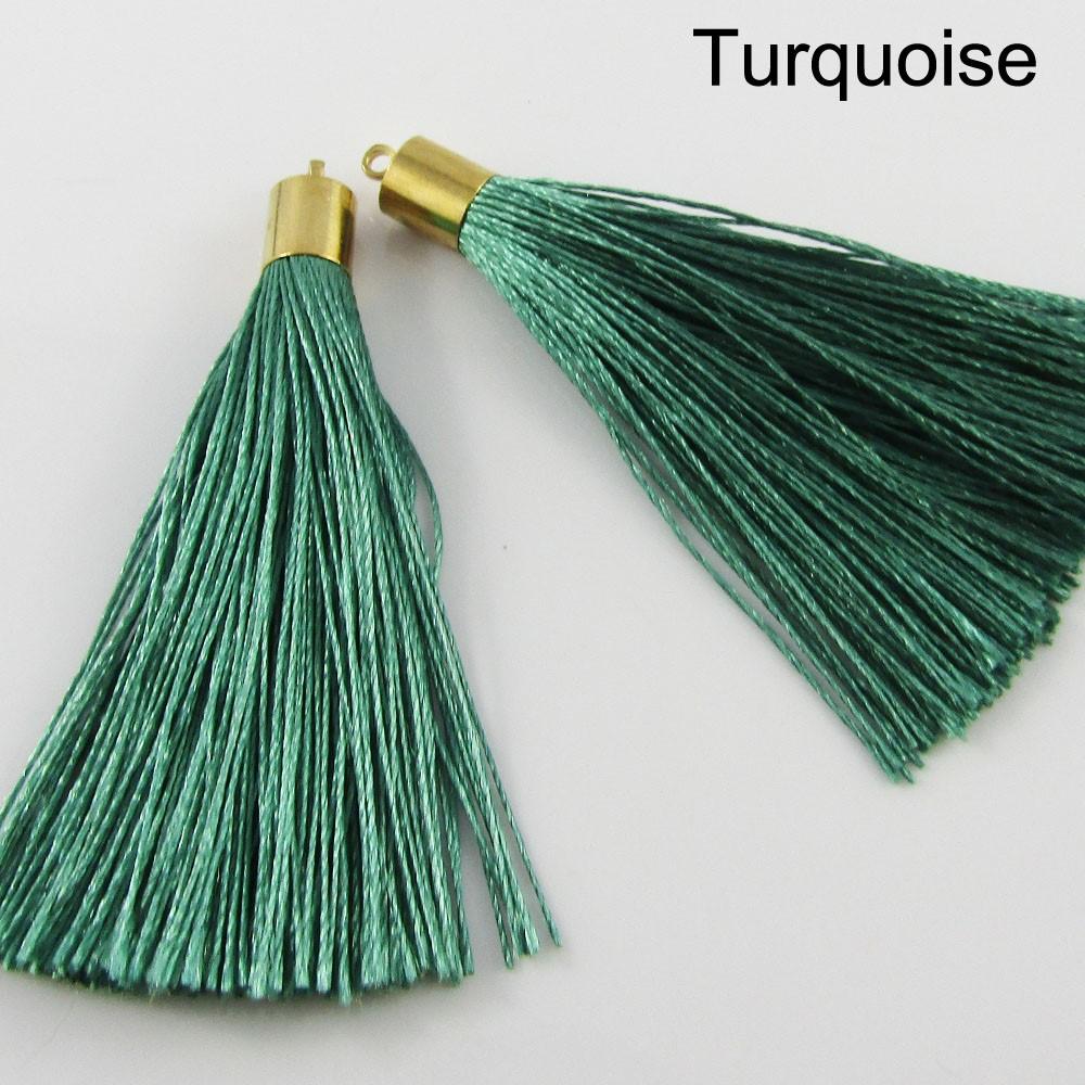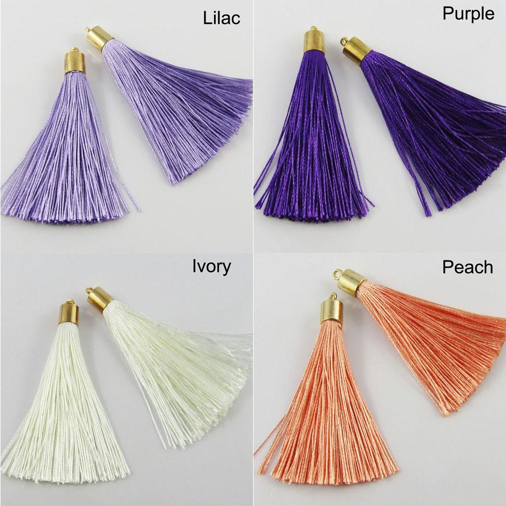 10pce Silky Polyester Tassel with Gold Alloy Cap 60mm Pick Colour Earrings etc