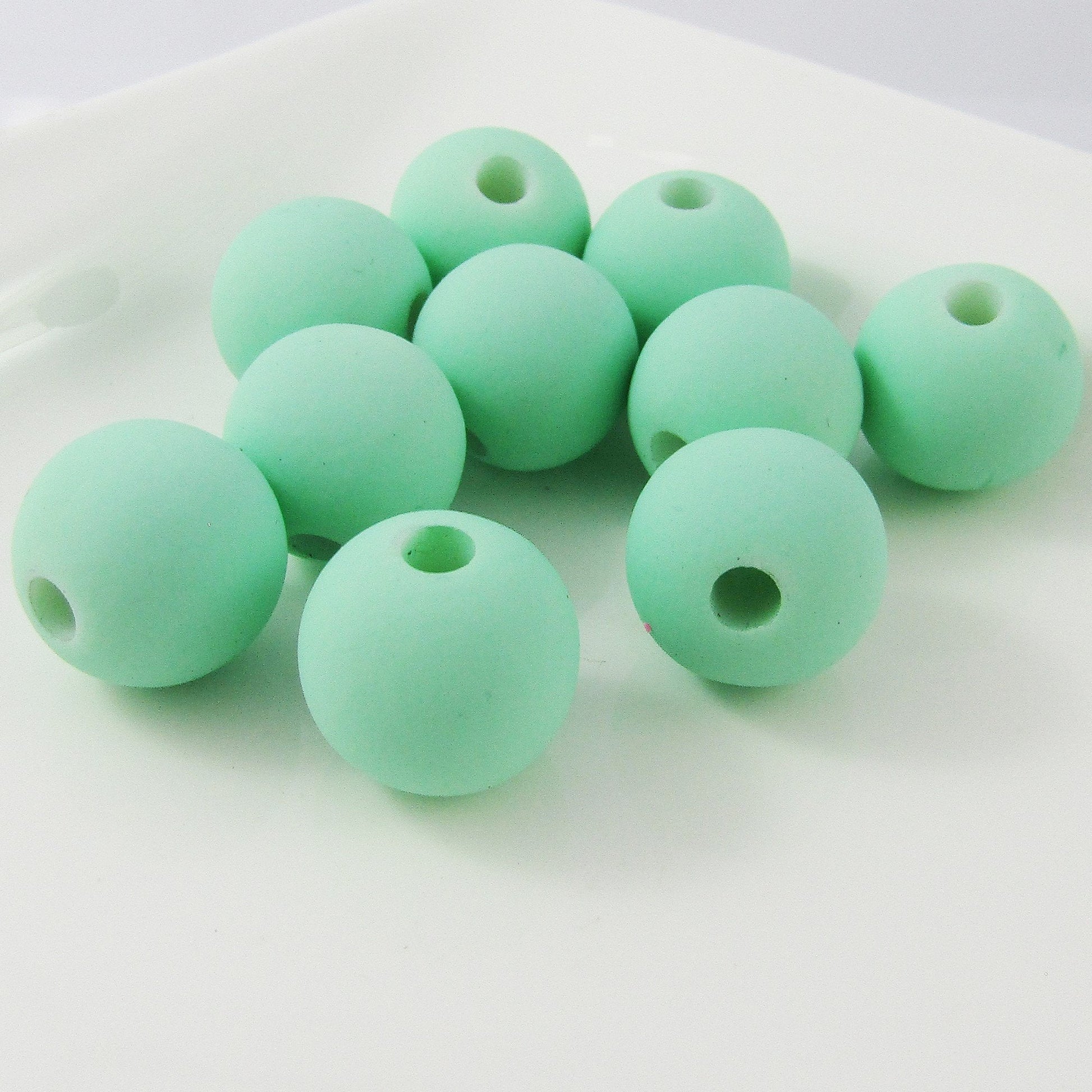 10pcs Acrylic Rubber Look Round Mint Craft Bead 13mm Hole 3.5mm