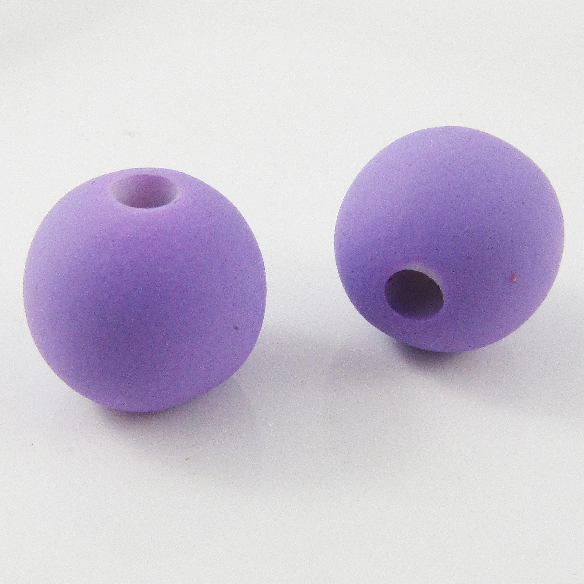 10pcs Acrylic Rubber Look Round Purple Craft Bead 15mm Hole 3.5mm