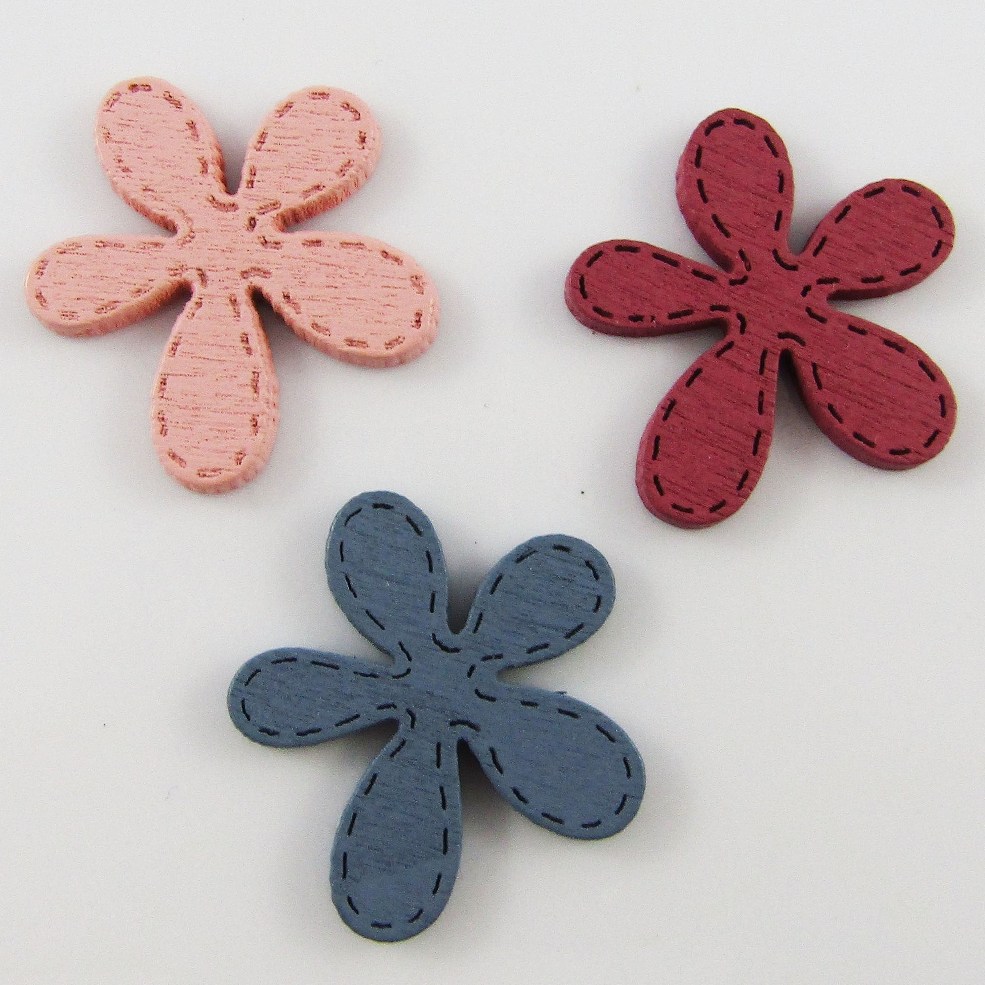 10pcs Daisy Stitches Painted Wood Cabochons Scrapbooking Cards Select Colour