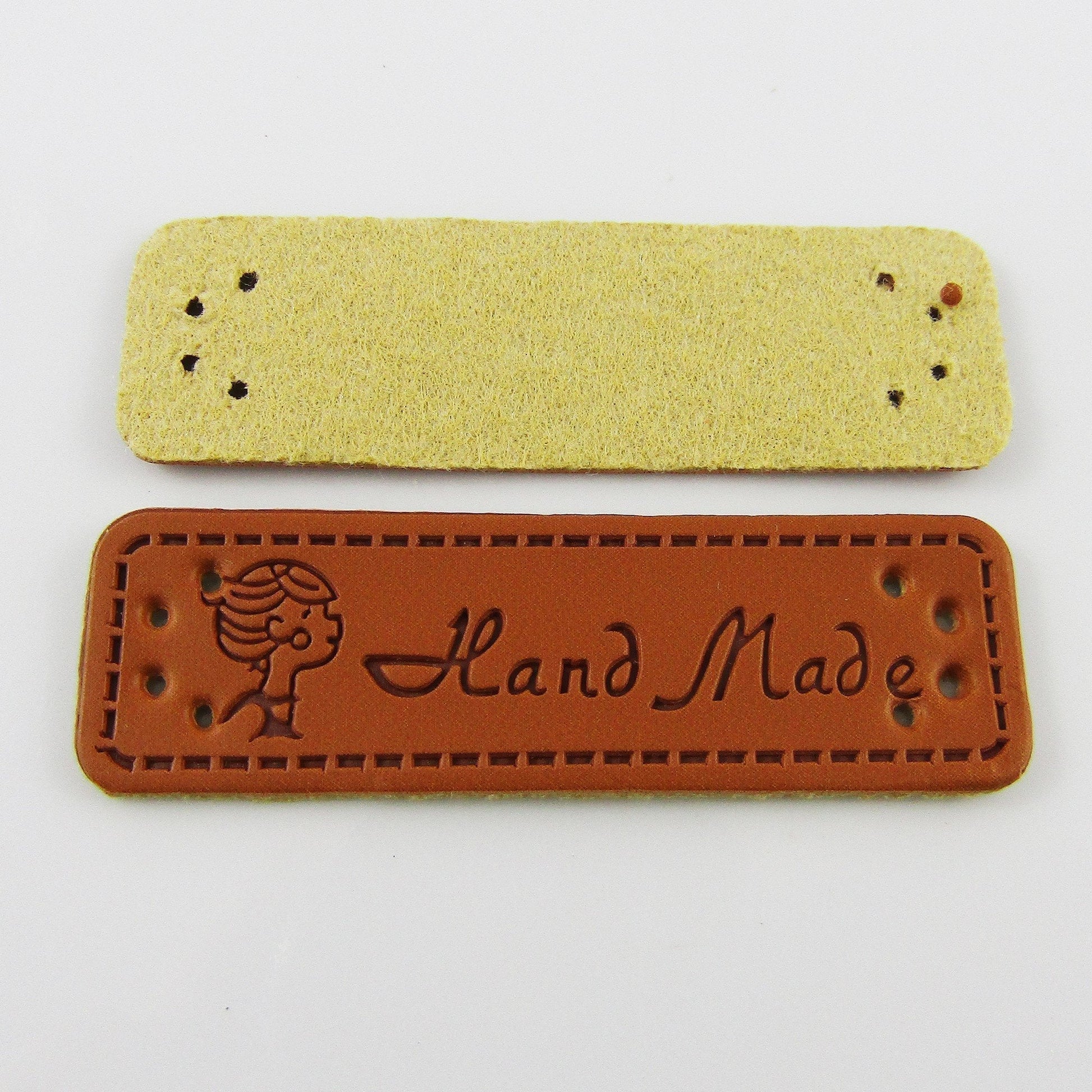10pcs DIY Embossed Faux Leather Hand Made Girl Sewing Label 51x16mm