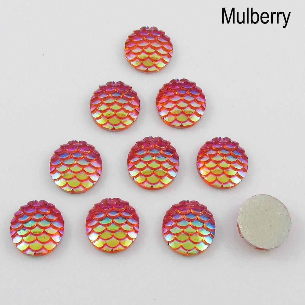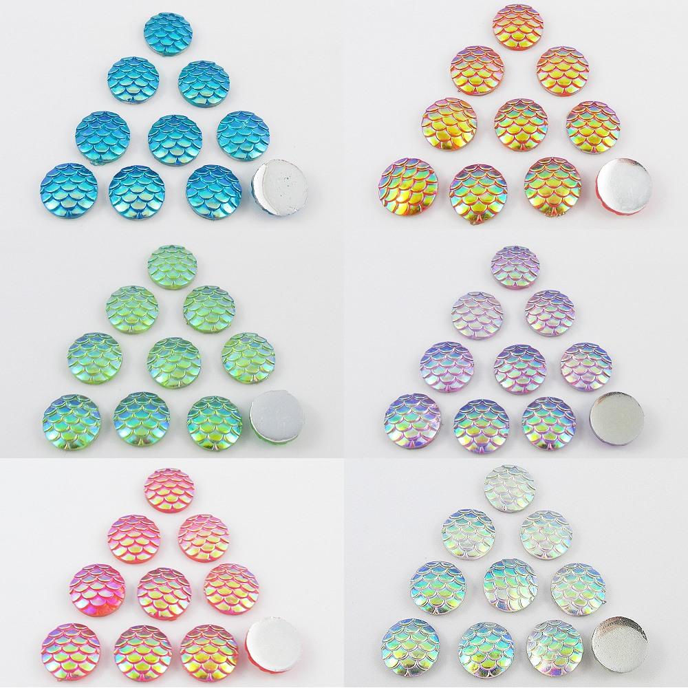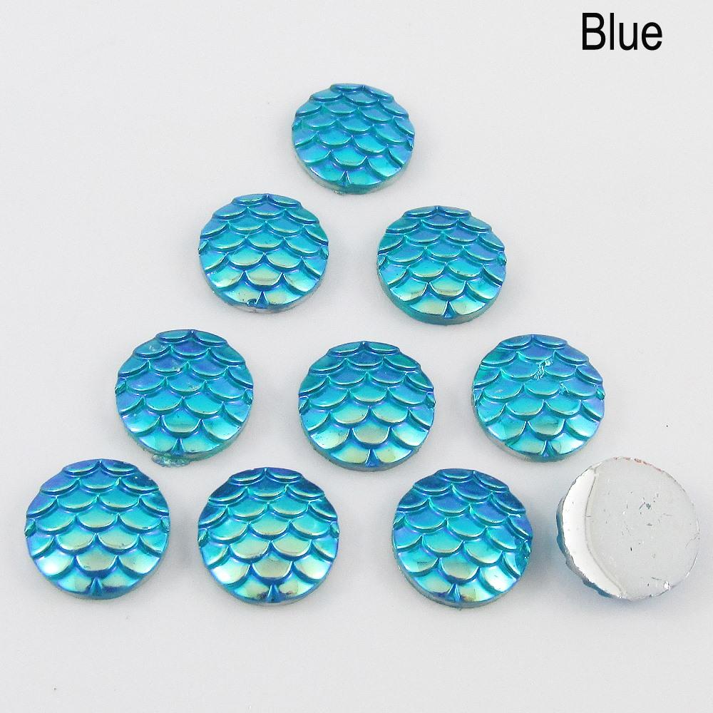 10pcs DIY Resin AB Mermaid Scale Cabochon 12mm Round Flat Back Select Colour