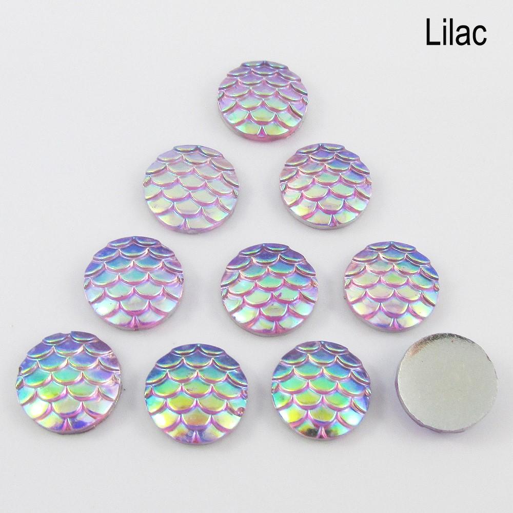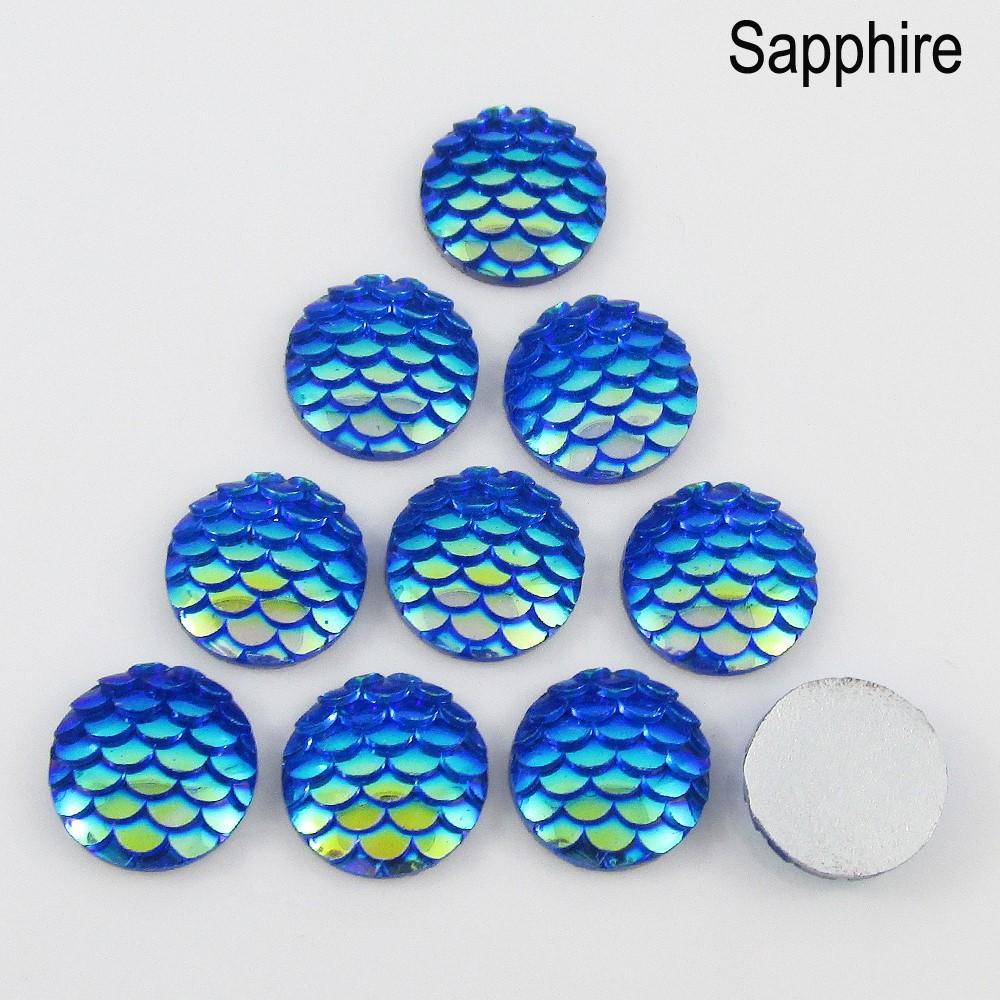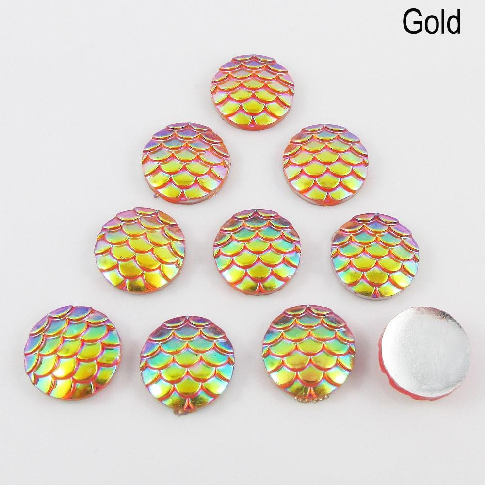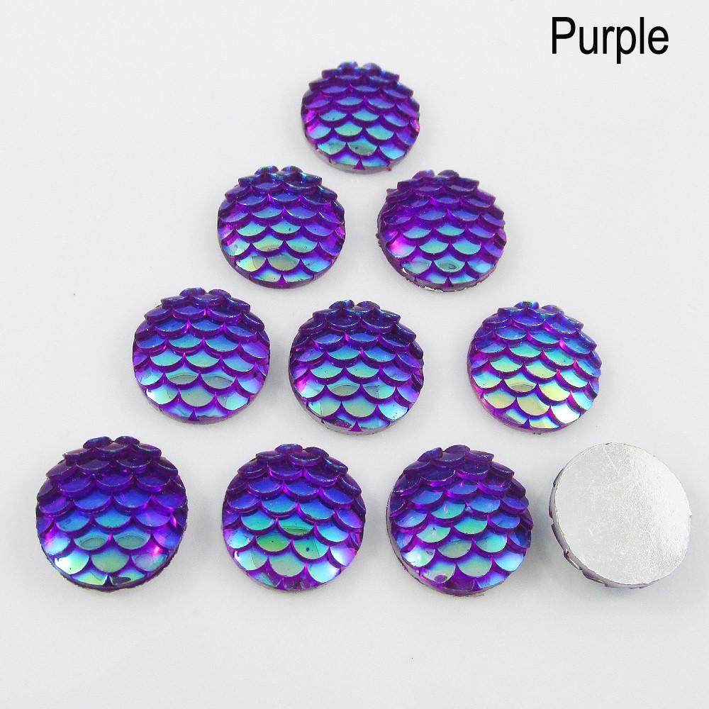 10pcs DIY Resin AB Mermaid Scale Cabochon 12mm Round Flat Back Select Colour