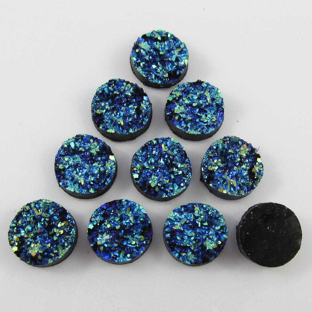 10pcs DIY Resin Electric Blue Druzy Cabochon 12mm Round Flat Back Earrings etc