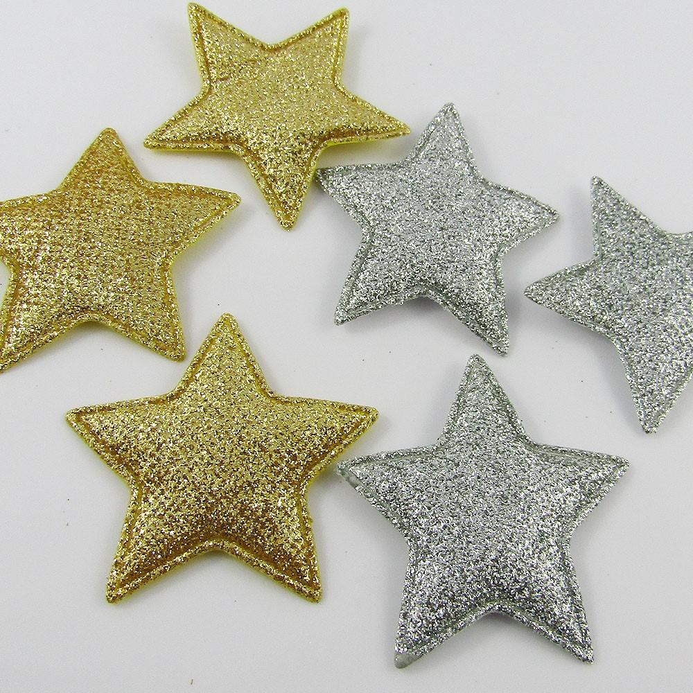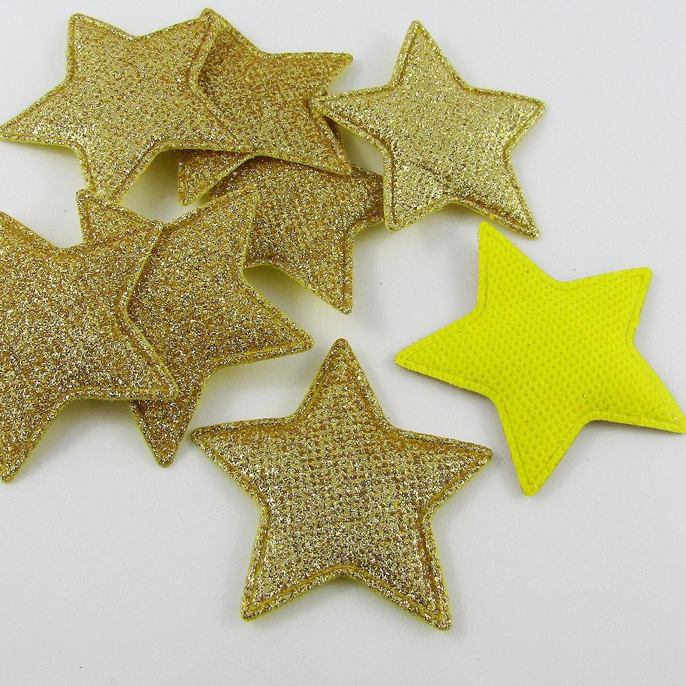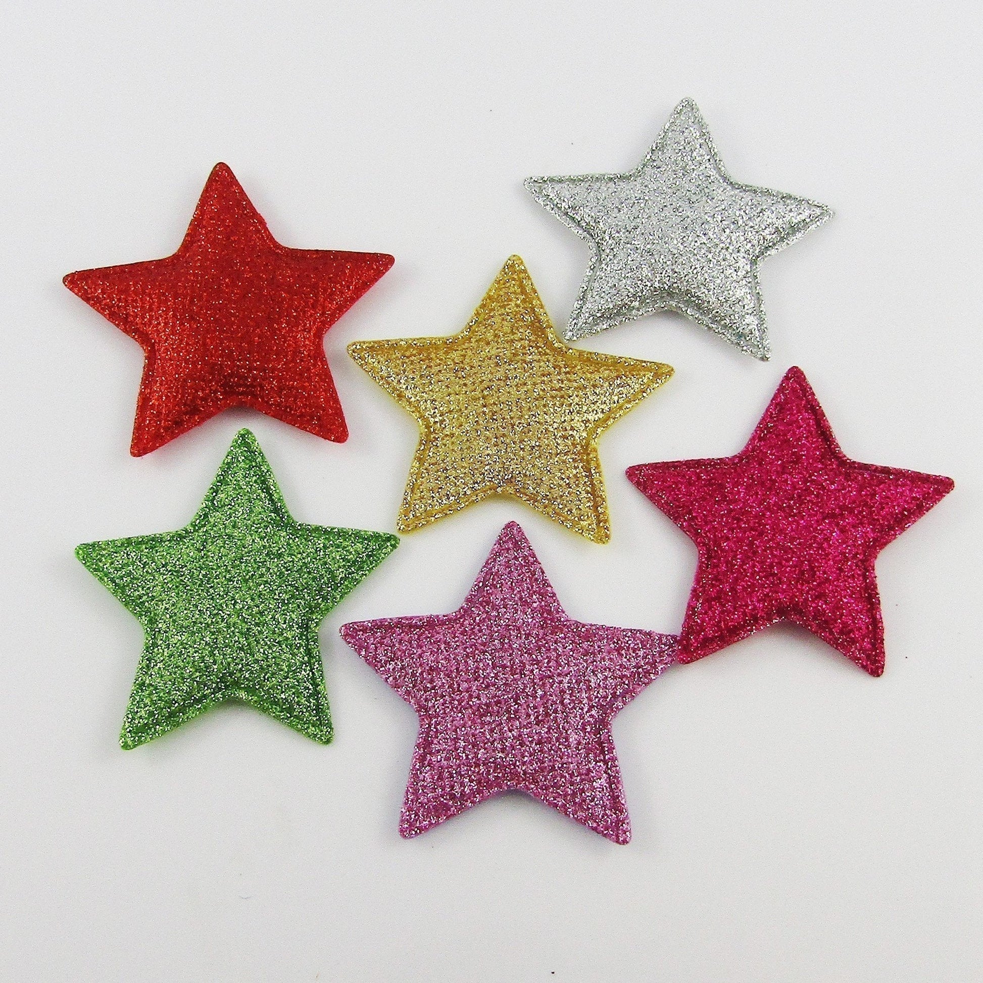 10pcs Glitter Star Padded Puffy Patch Craft Embellishment 51x54mm Select Colour