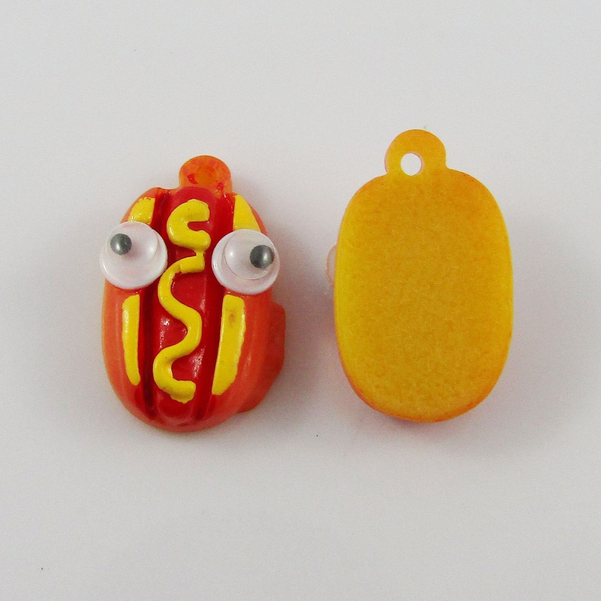 10pcs Goggle Eye Hot Dog Charm Pendant Junk Food ACRYLIC 21x13mm
