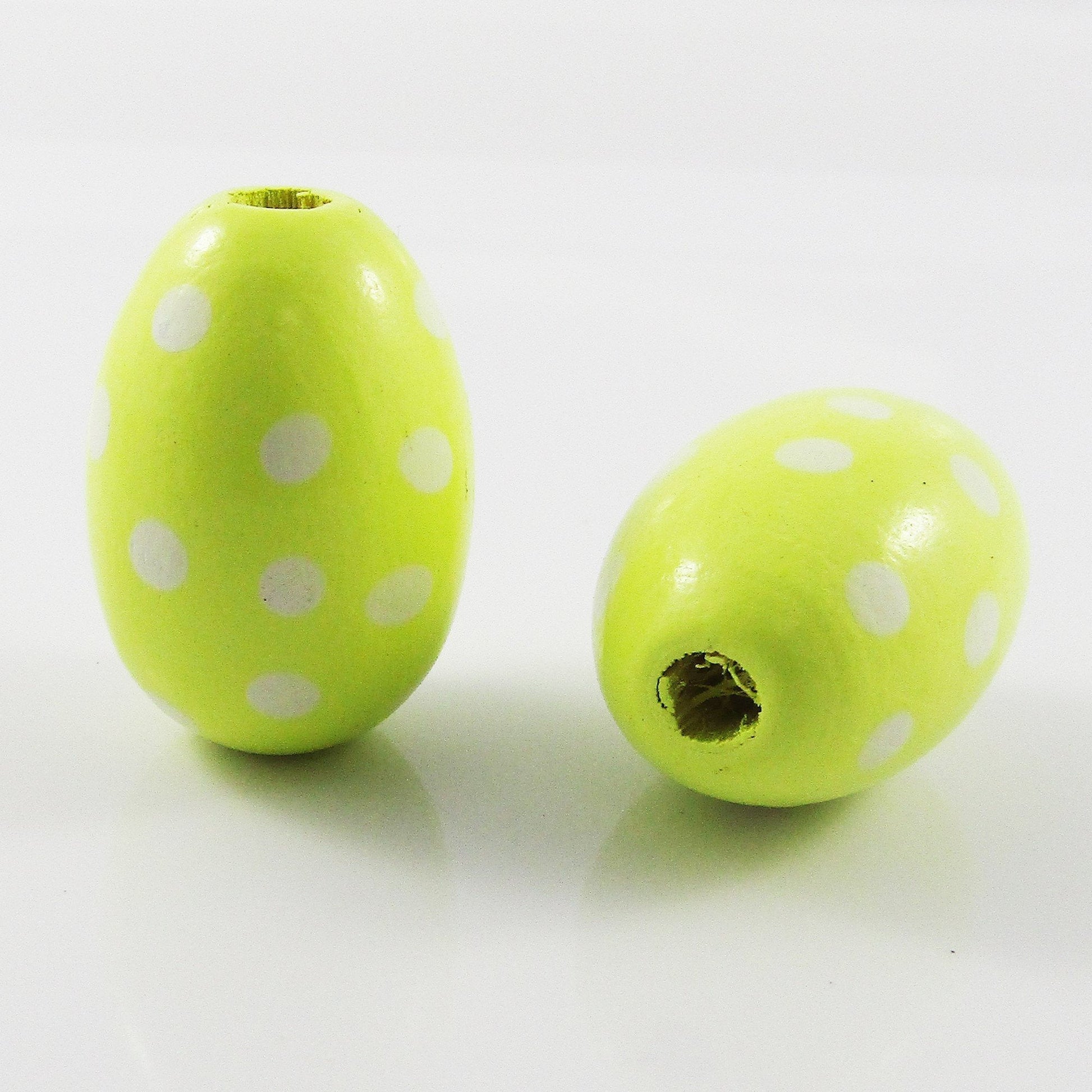 10pcs Hemu Wood Yellow Spotted Easter Egg Bead Craft 28x19mm Hole 4mm