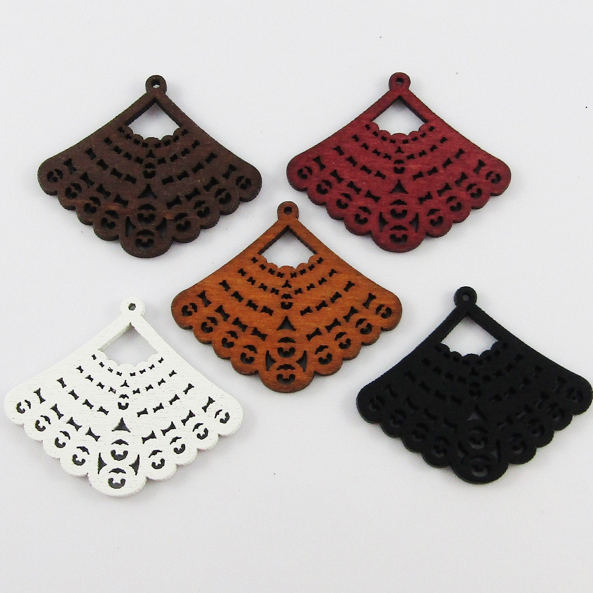 10pcs in Random Pairs Filigree Fan Charm Pendant Craft Wood 33x39mm