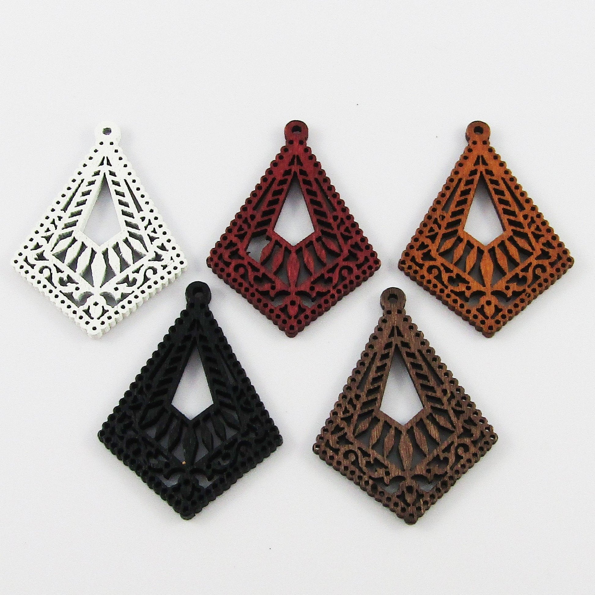 10pcs in Random Pairs Filigree Kite Charm Pendant Craft Wood 41x30mm