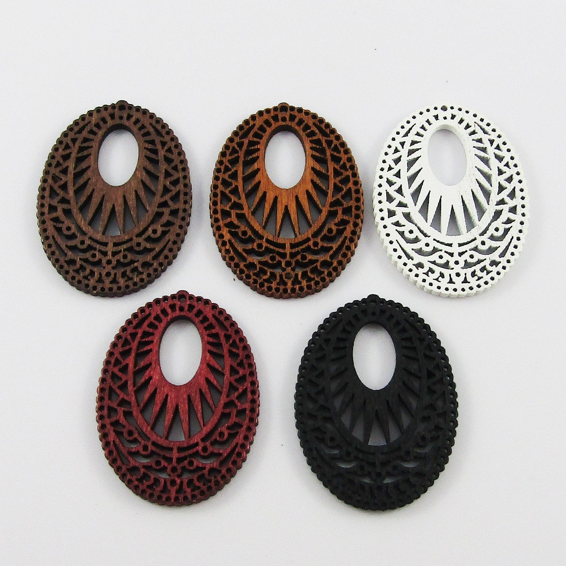 10pcs in Random Pairs Filigree Oval Charm Pendant Craft Wood 39x39mm