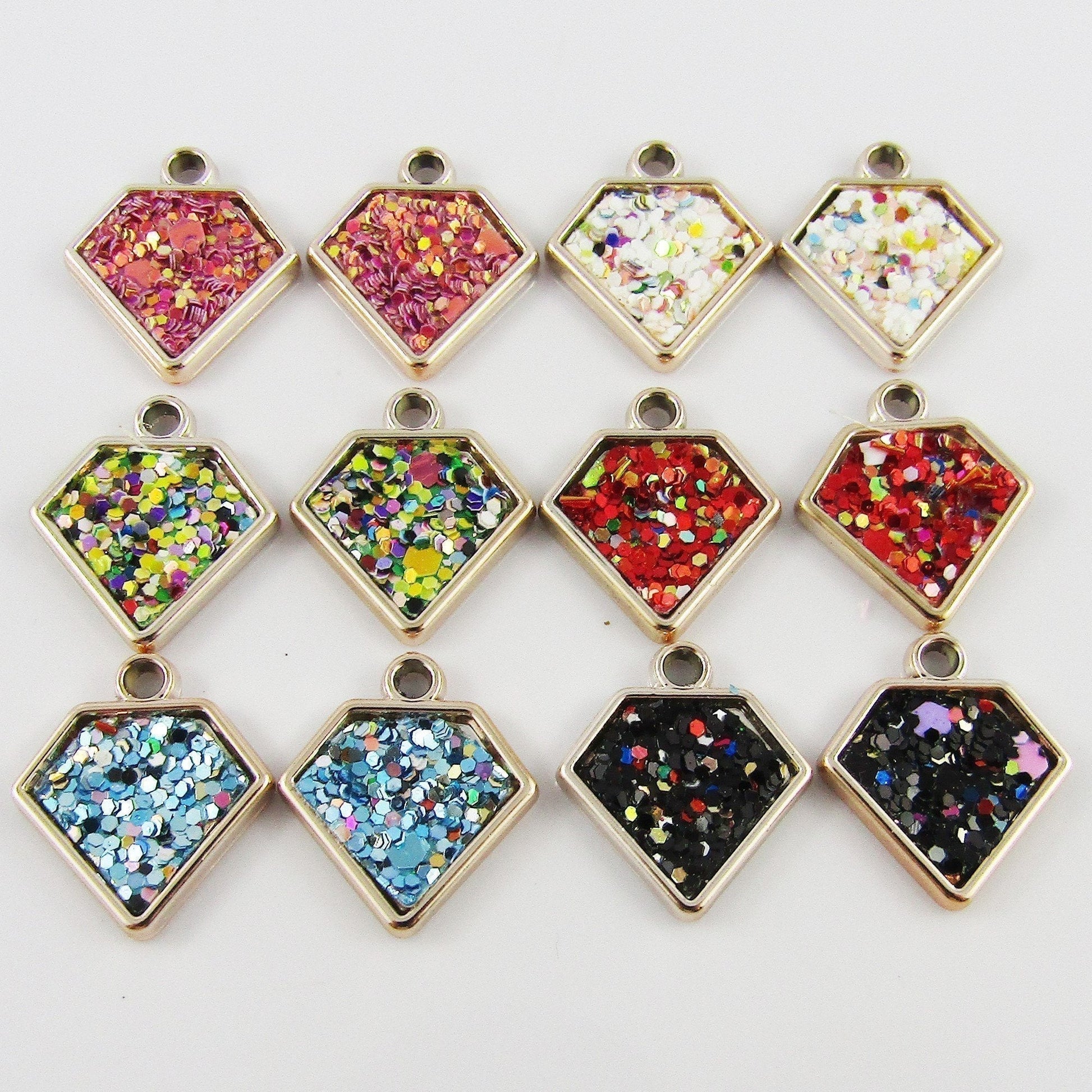 10pcs in Random Pairs Gold Diamond Inlaid Glitter Charm Pendant 20x18mm ACRYLIC