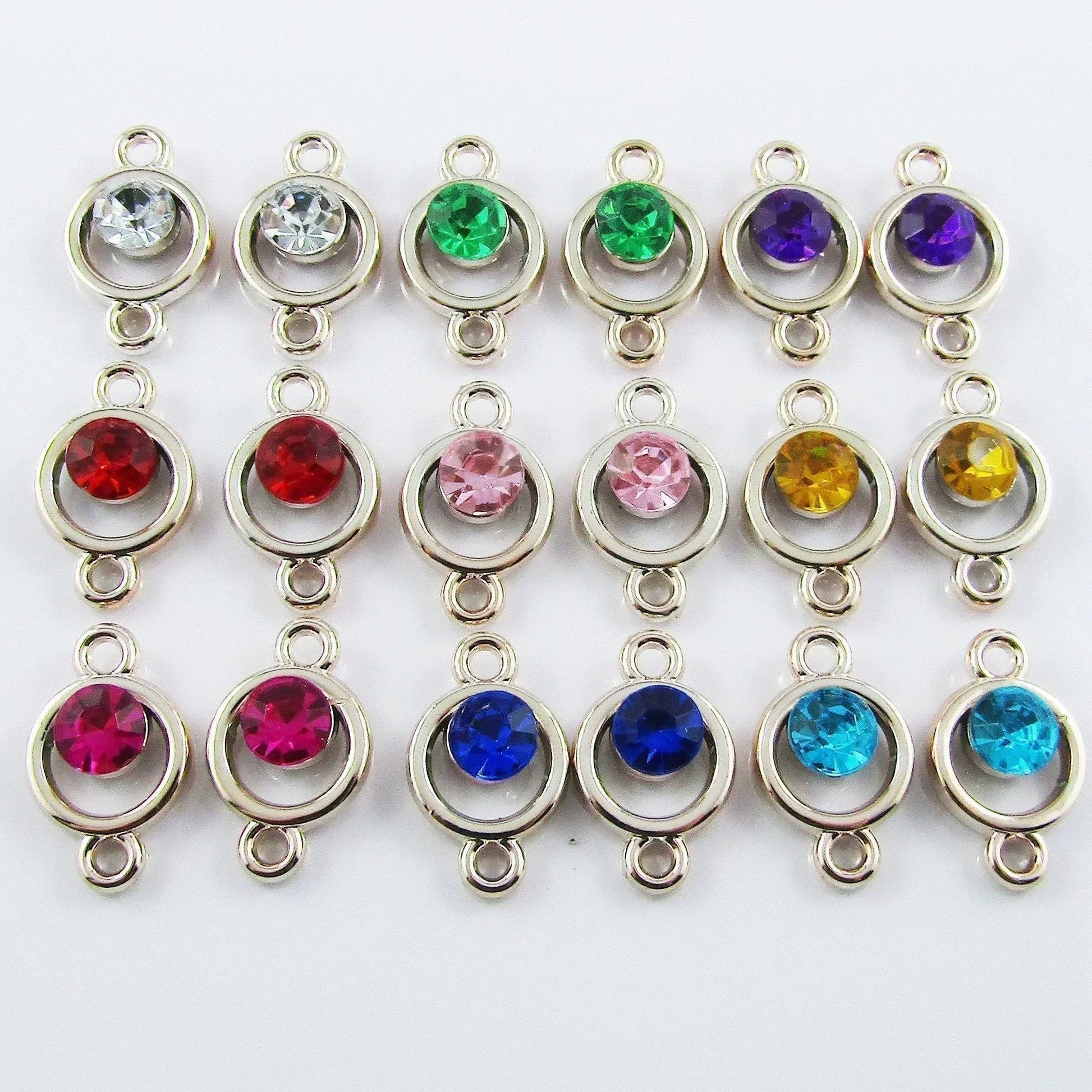 10pcs in Random Pairs Round Rhinestone Connector Charm Pendant 24x15mm ACRYLIC