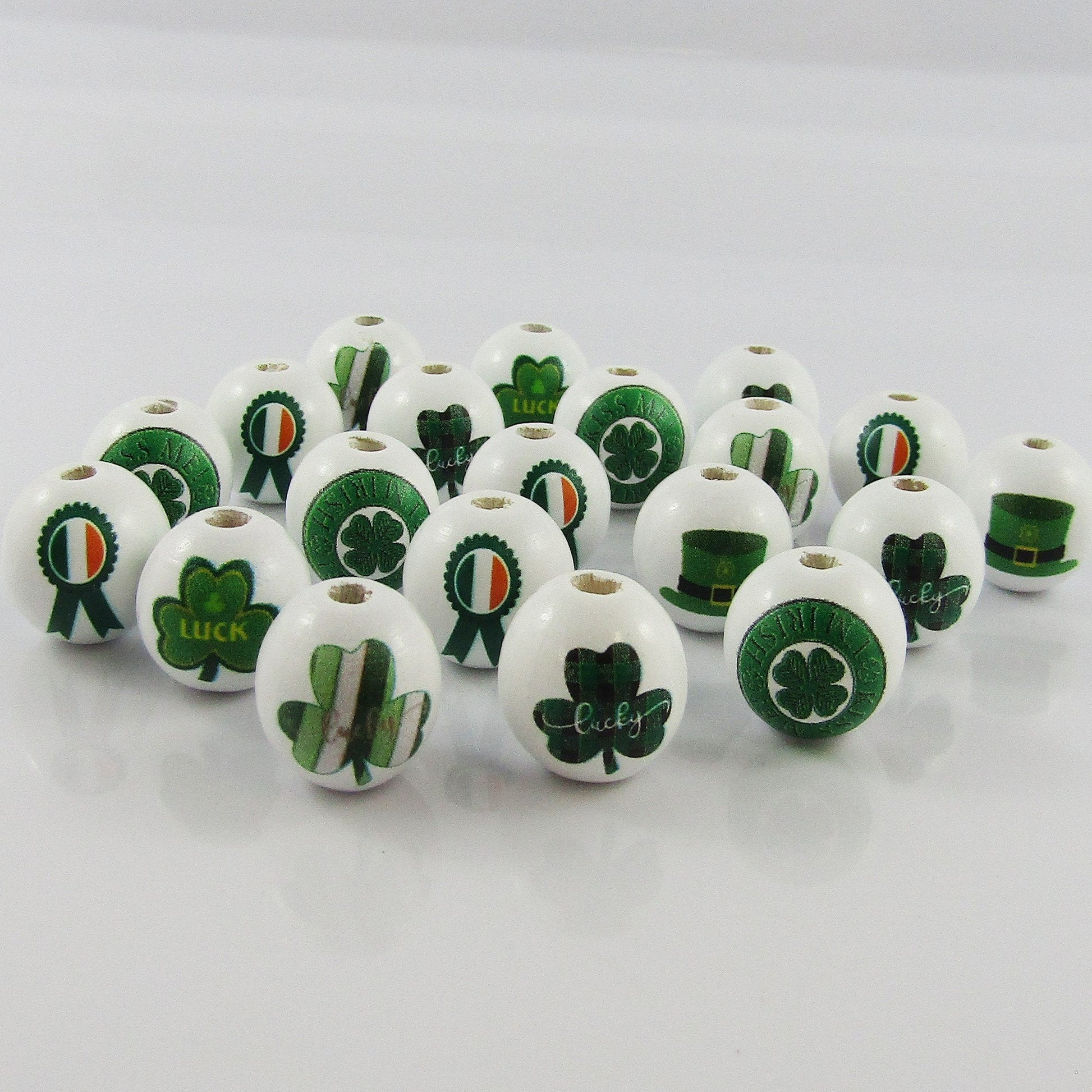 10pcs Printed Wood Round Irish St Patricks Day Theme Craft Bead 15mm Hole 3mm