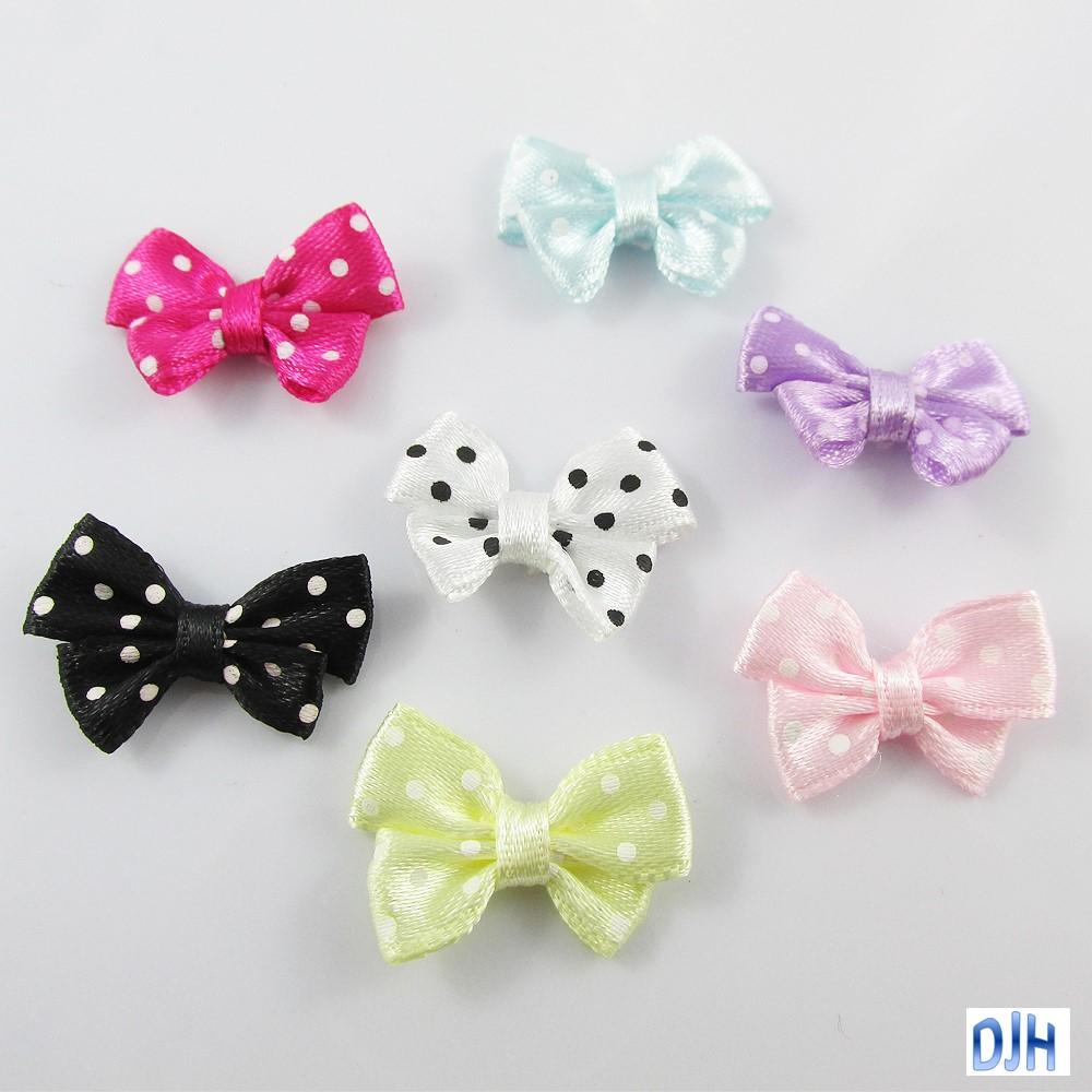 10pcs Satin Ribbon Spotted Bows for Hair Clips Crafts Cards 17x24mm Pick Colour