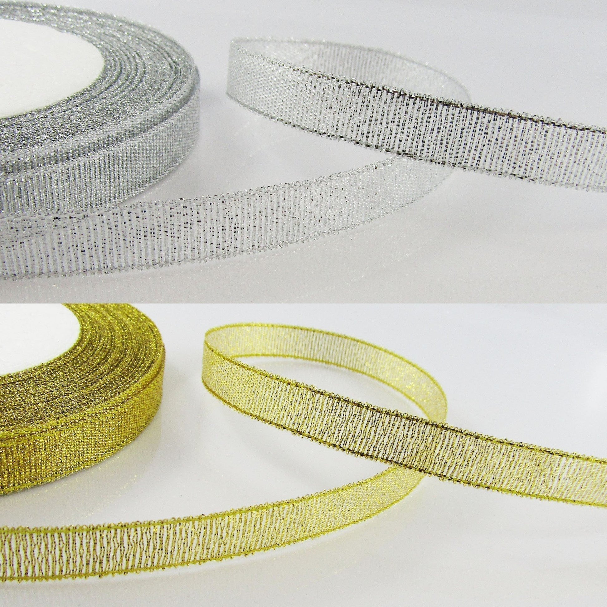 1roll (22metres) 10mm Glitter Metallic Ribbon Gold or Silver Great for Christmas