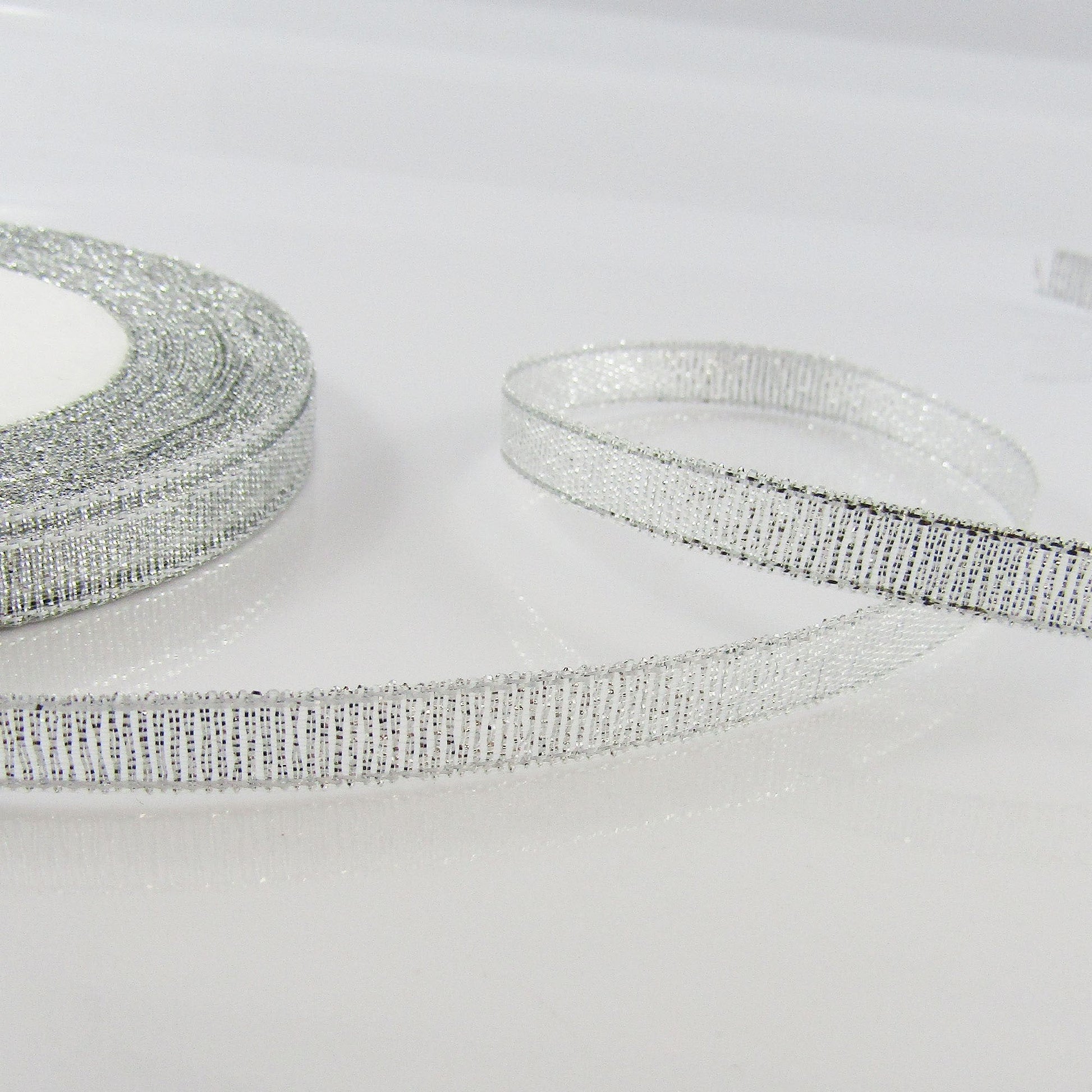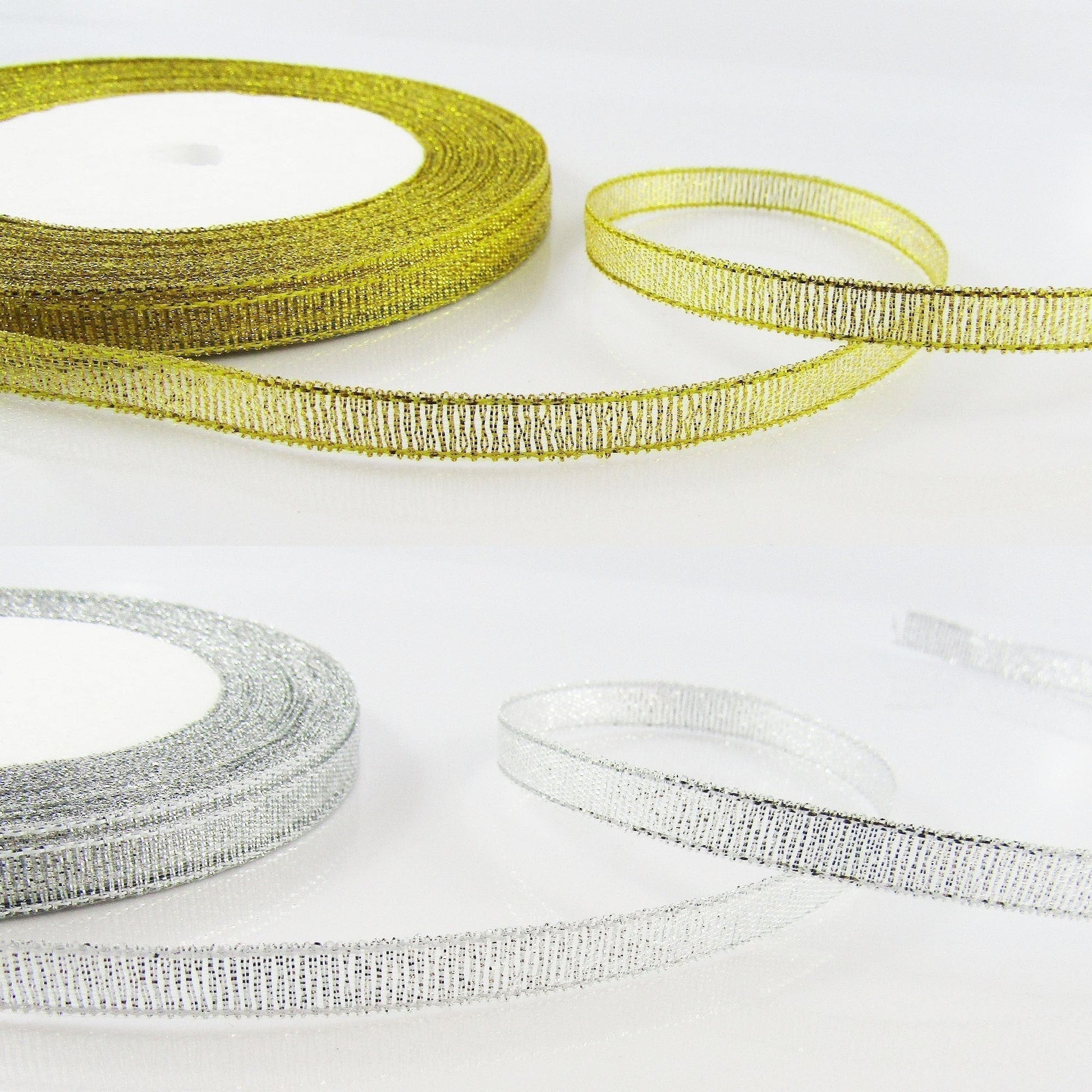 1roll (22metres) 6mm Glitter Metallic Ribbon Gold or Silver Great for Christmas!