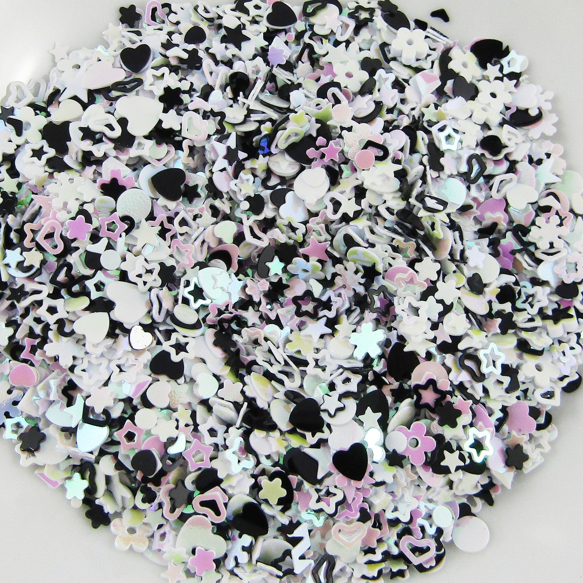 20g Black & White Flowers Hearts & Stars PVC Sprinkles Resin Mix-in Shaker Cards