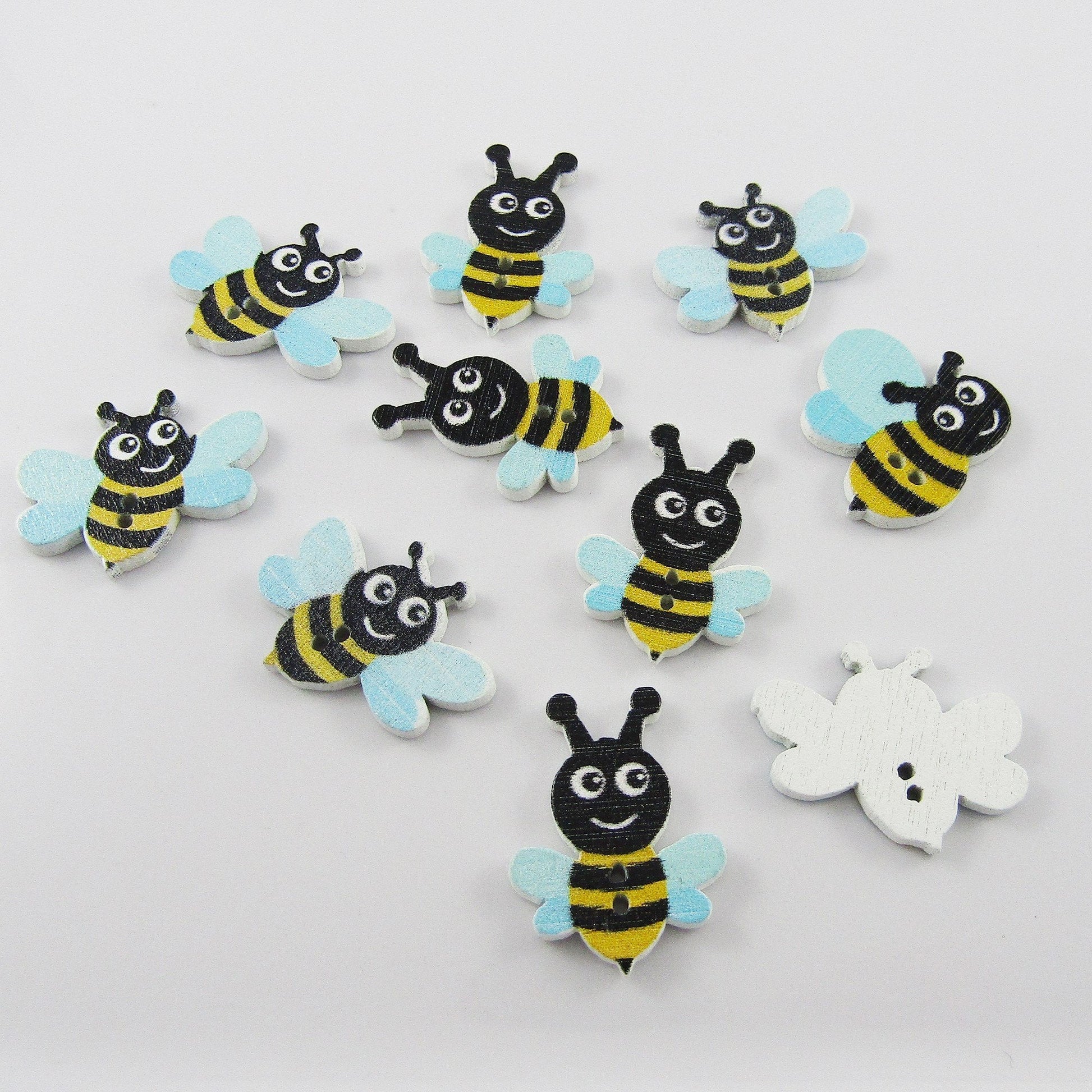 20pce Cute Bee 2 Hole Wood Button 22-24 x 19-20mm Sewing Cards Junk Journal