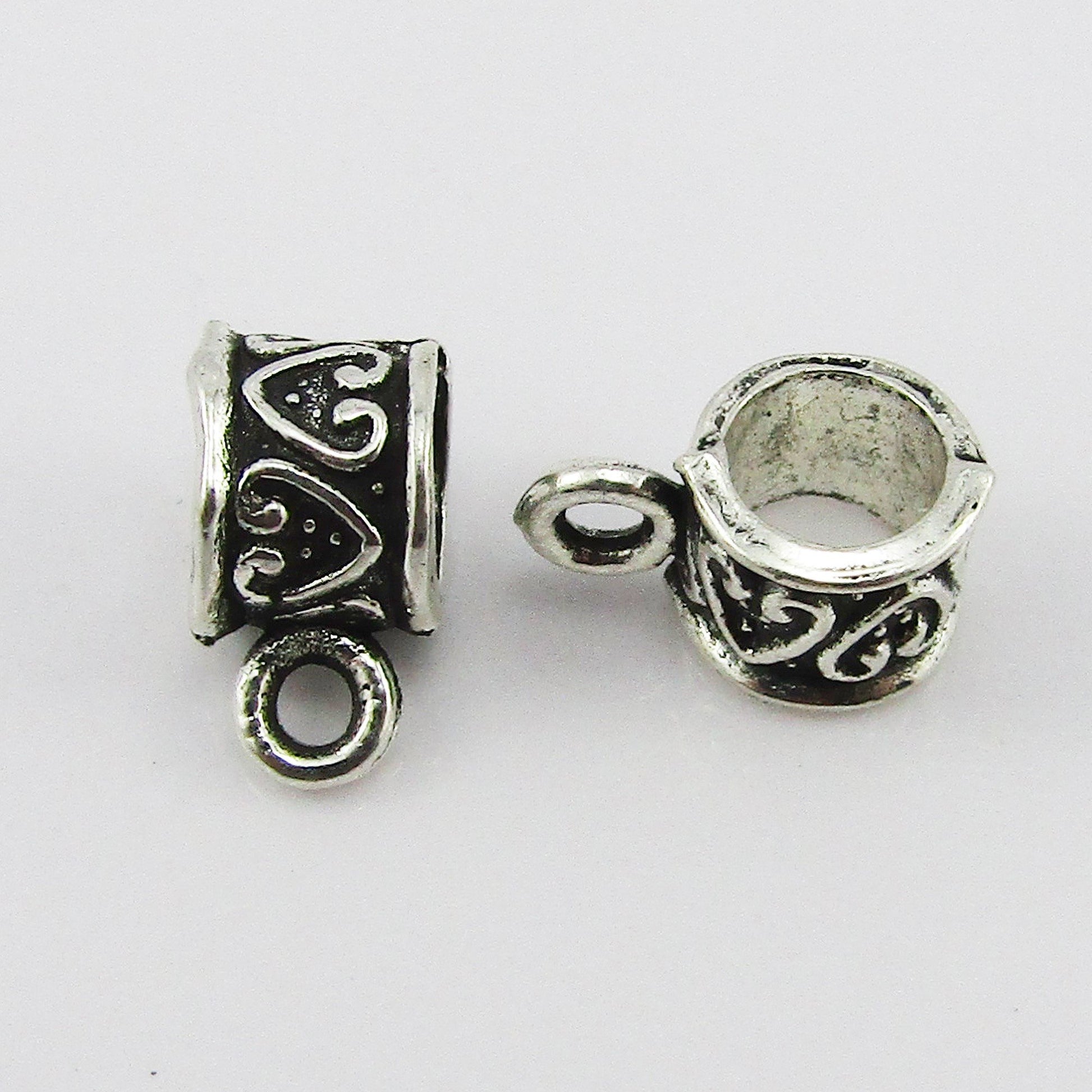 20pce Engraved Heart European Bail Findings 11x6mm Hole 2mm & 5mm