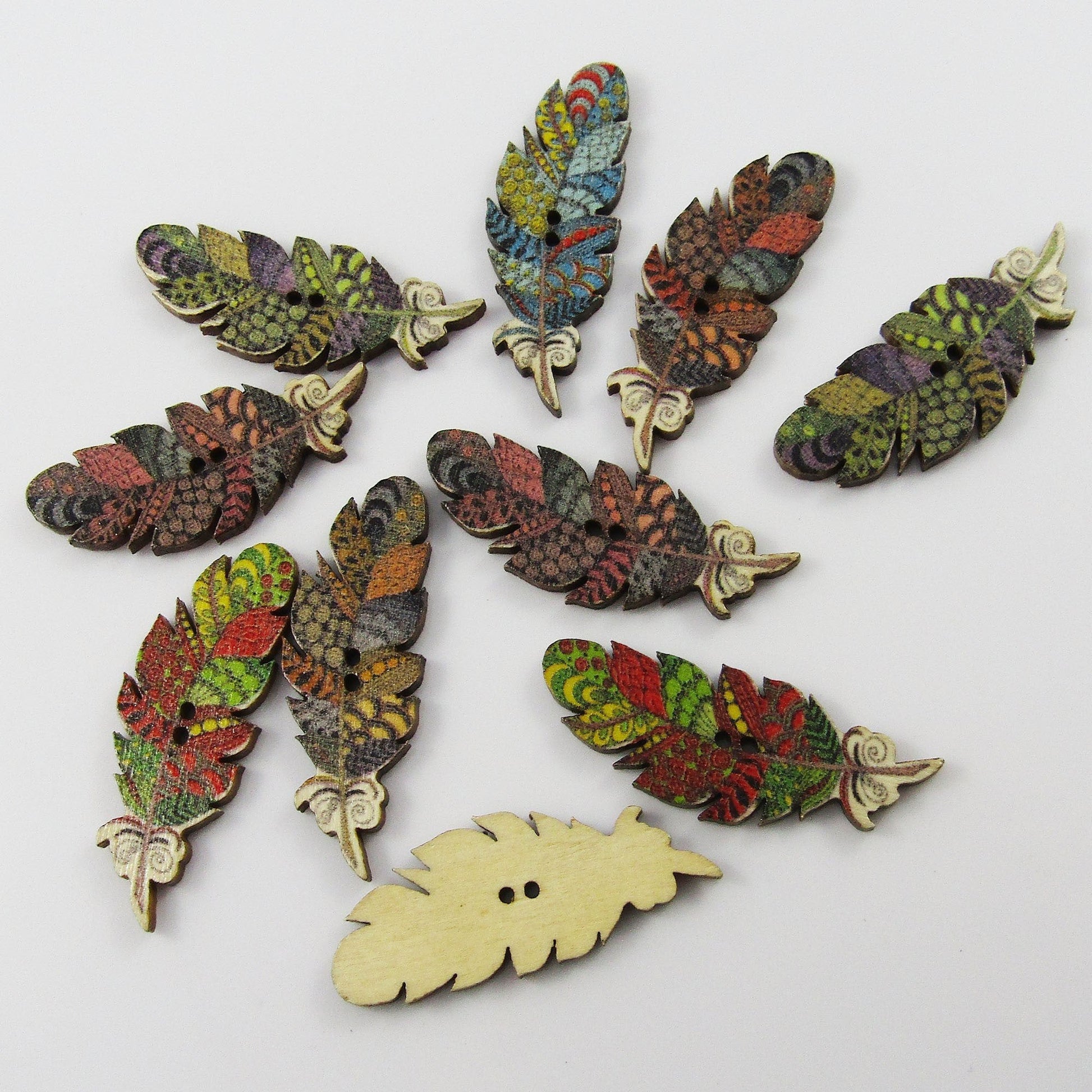 20pce Feather 2 Hole Wood Button 40x15mm Sewing Cards Junk Journal