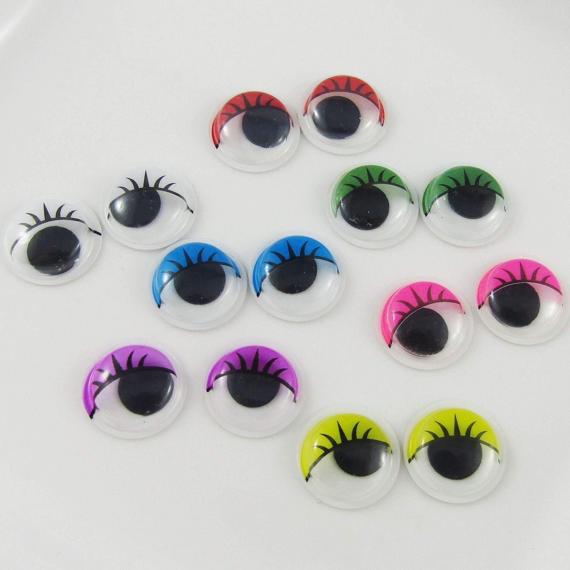 20pcs (10pair) 15mm Glue on Printed Lashes Wiggly Google Eyes Plastic Kid Craft