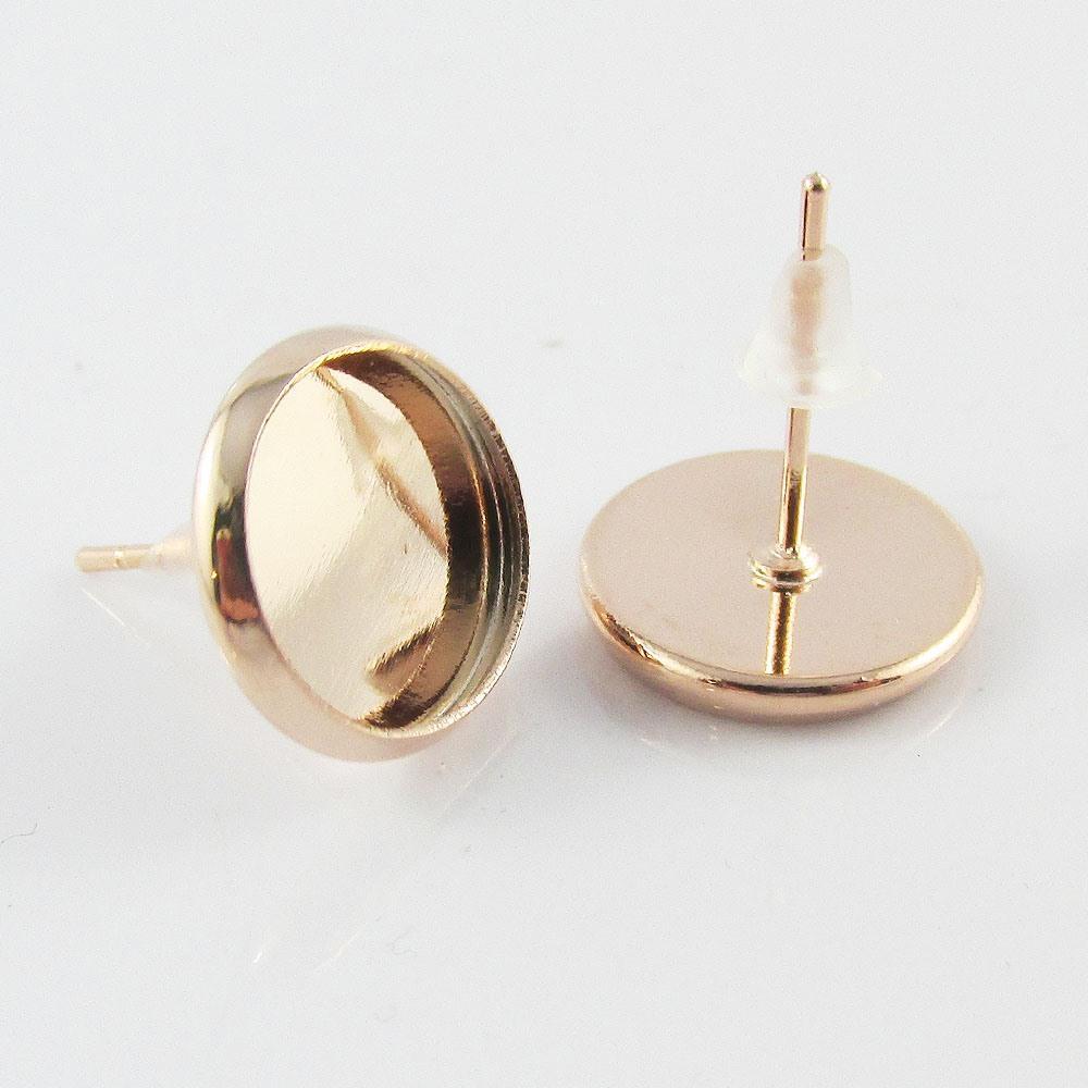 20pcs (10sets) Cabochon Setting Post Stud Earring & Back Rose Gold Fit 10mm Cabs