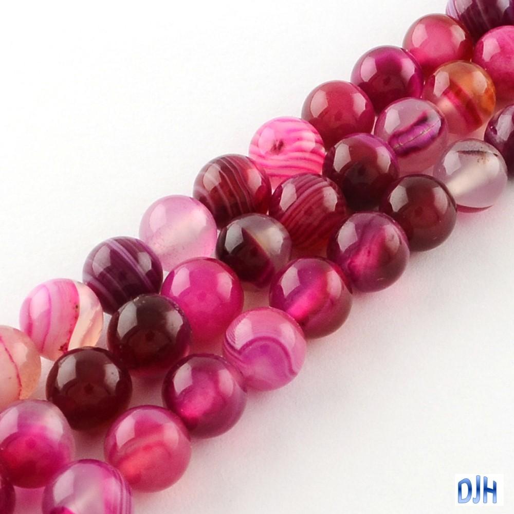 20pcs Dyed Natural Striped Agate Beads Round 6mm Hole 1mm Pink