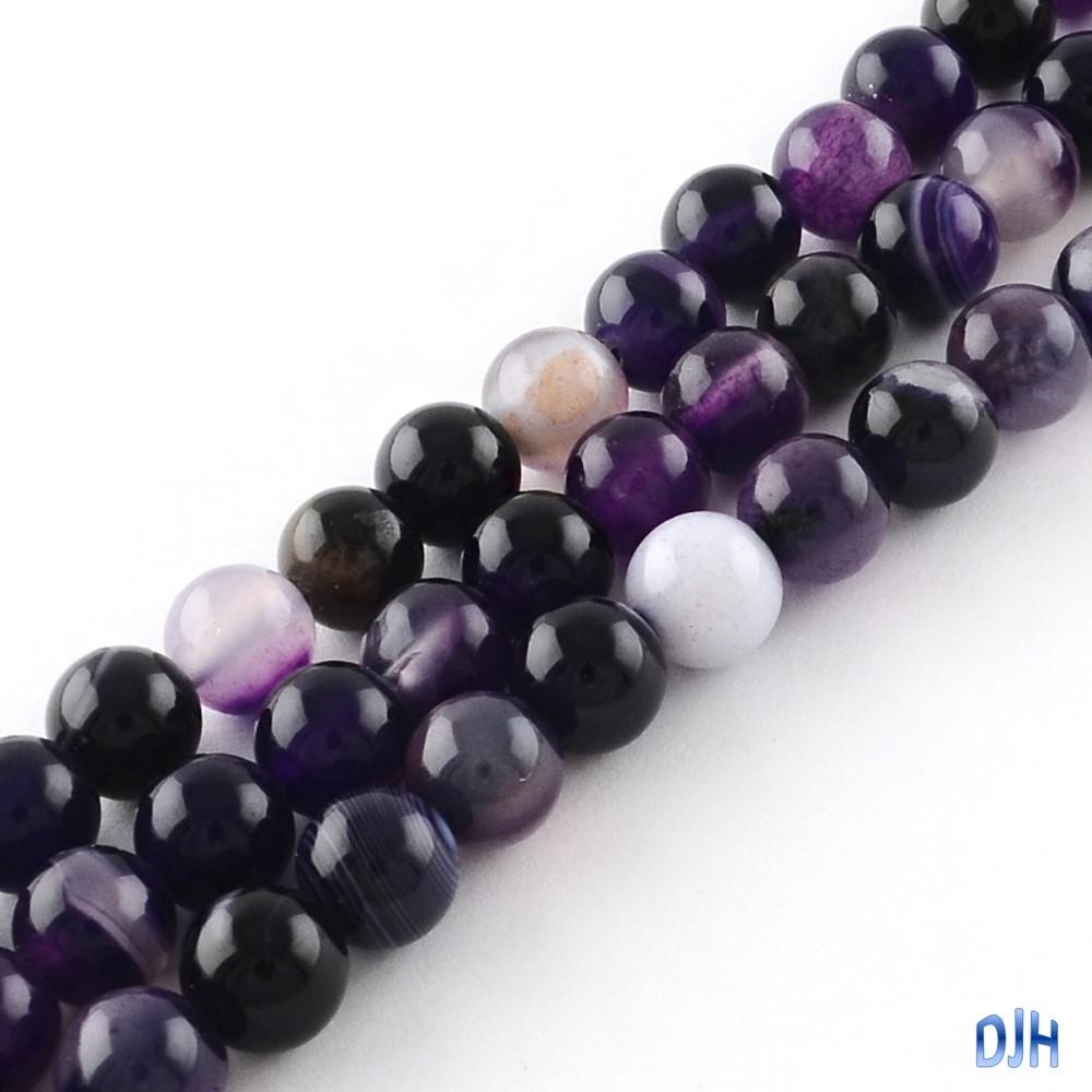 20pcs Dyed Natural Striped Agate Beads Round 6mm Hole 1mm Purple