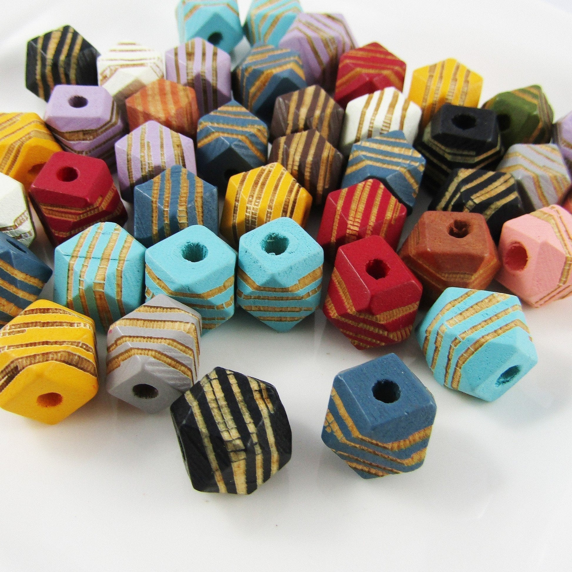 20pcs Faceted Zebra Stripe Bead Wood Painted Laser Engraved 12x12mm Hole 2.5mm