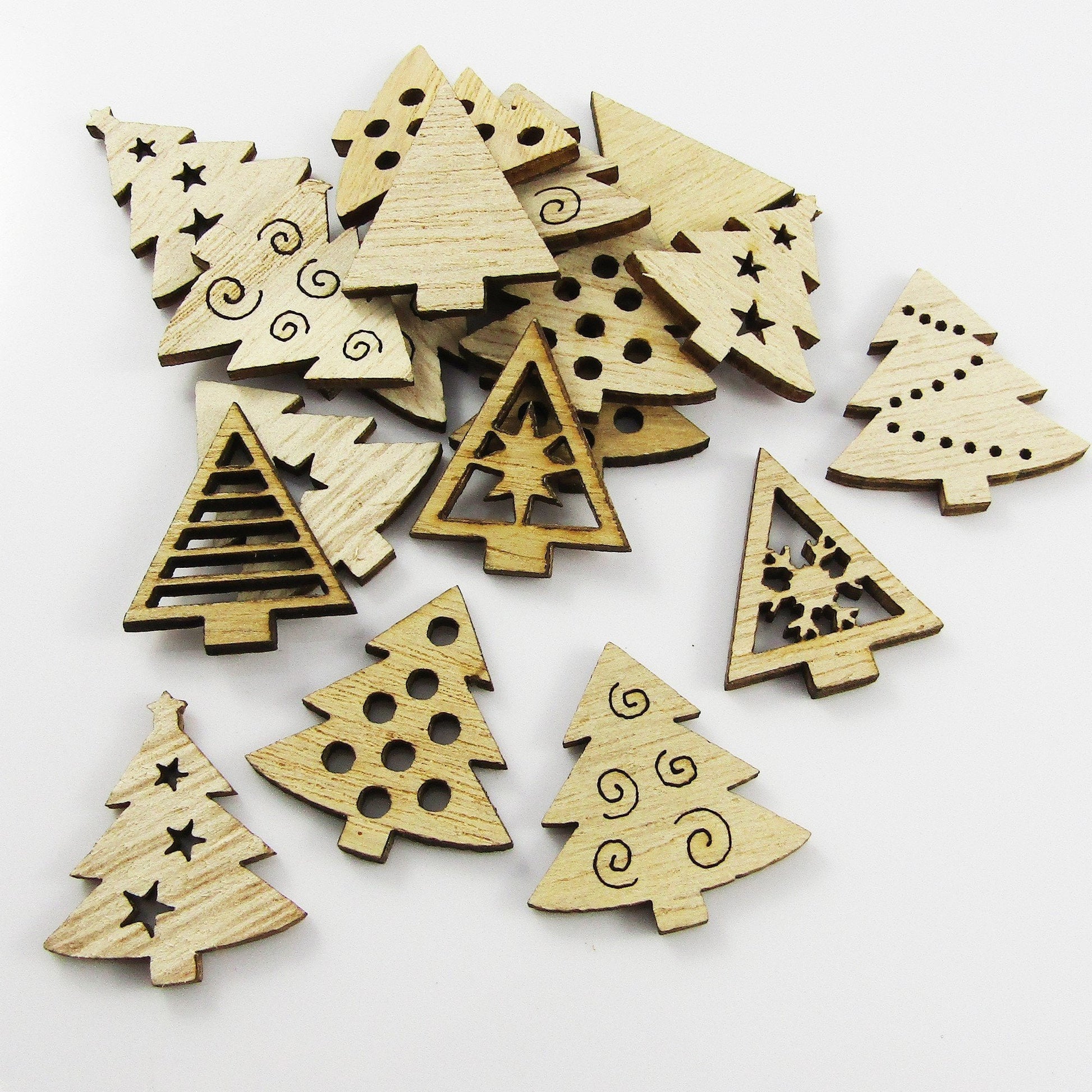 20pcs Laser Cut Wood Christmas Tree Cabochons Scrapbooking Cards & More!