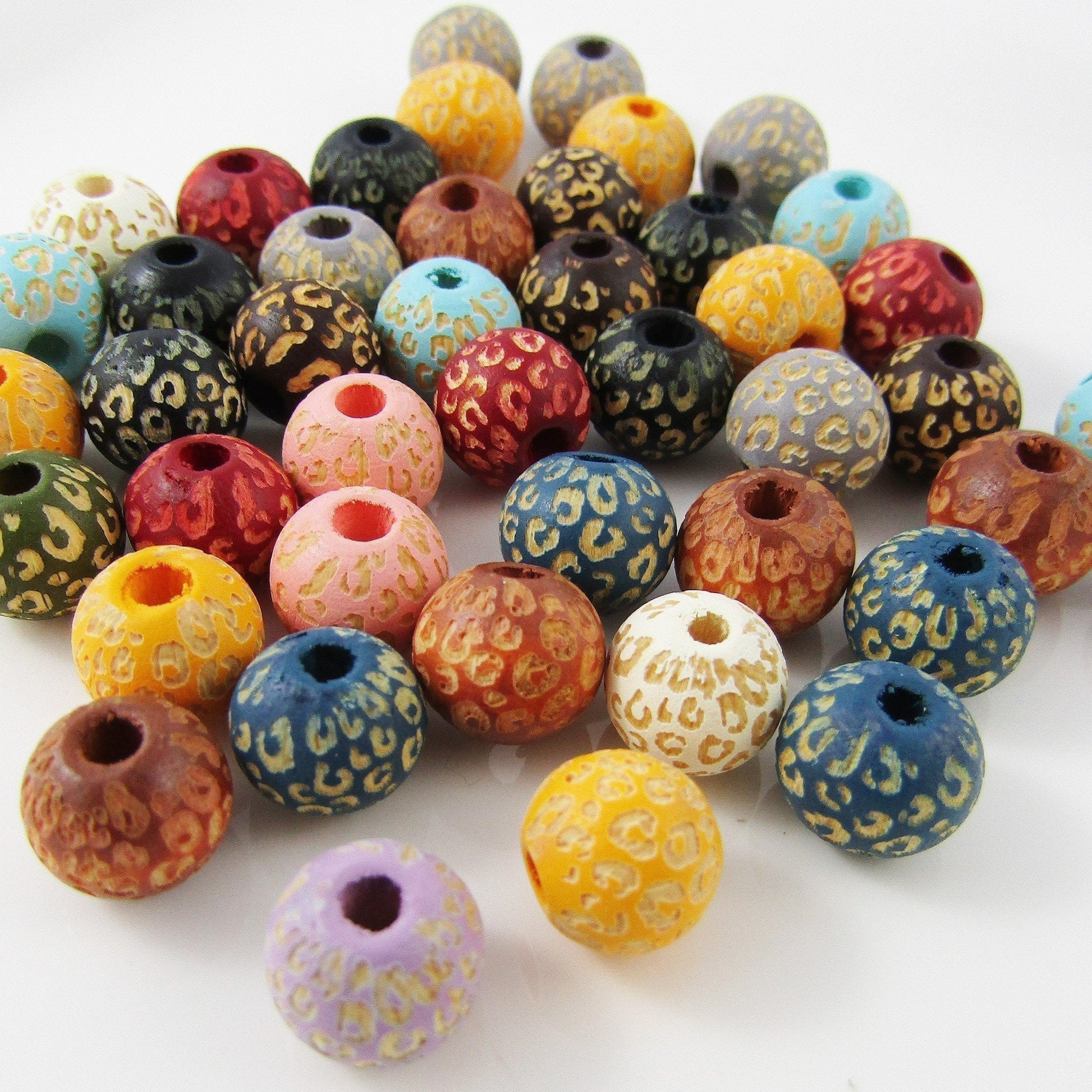 20pcs Round Leopard Print Bead Wood Painted Laser Engraved 10x8mm Hole 2.5mm