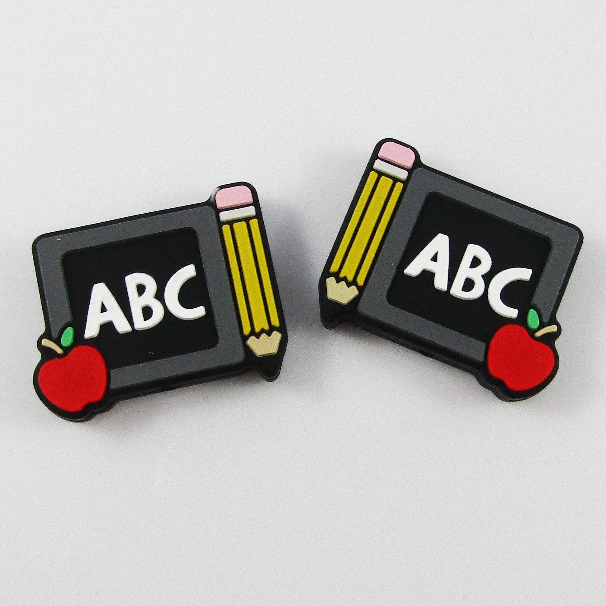 2pcs ABC Blackboard Silicone Focal Bead 24x31mm Hole 2mm Beadable Pen Keychains