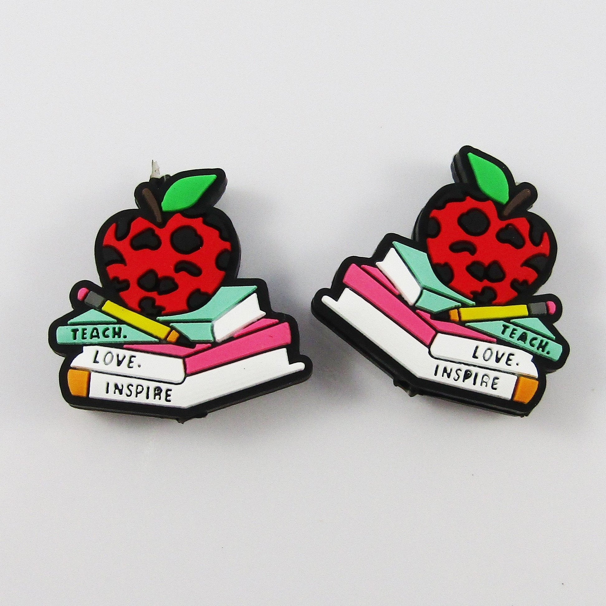 2pcs Apple Books Silicone Focal Bead 27x29mm Hole 2.5mm Beadable Pen Keychains