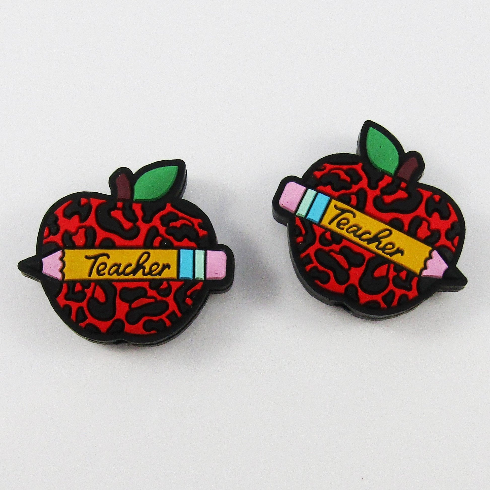 2pcs Apple Teacher Silicone Focal Bead 26x30mm Hole 2mm Beadable Pen Keychains