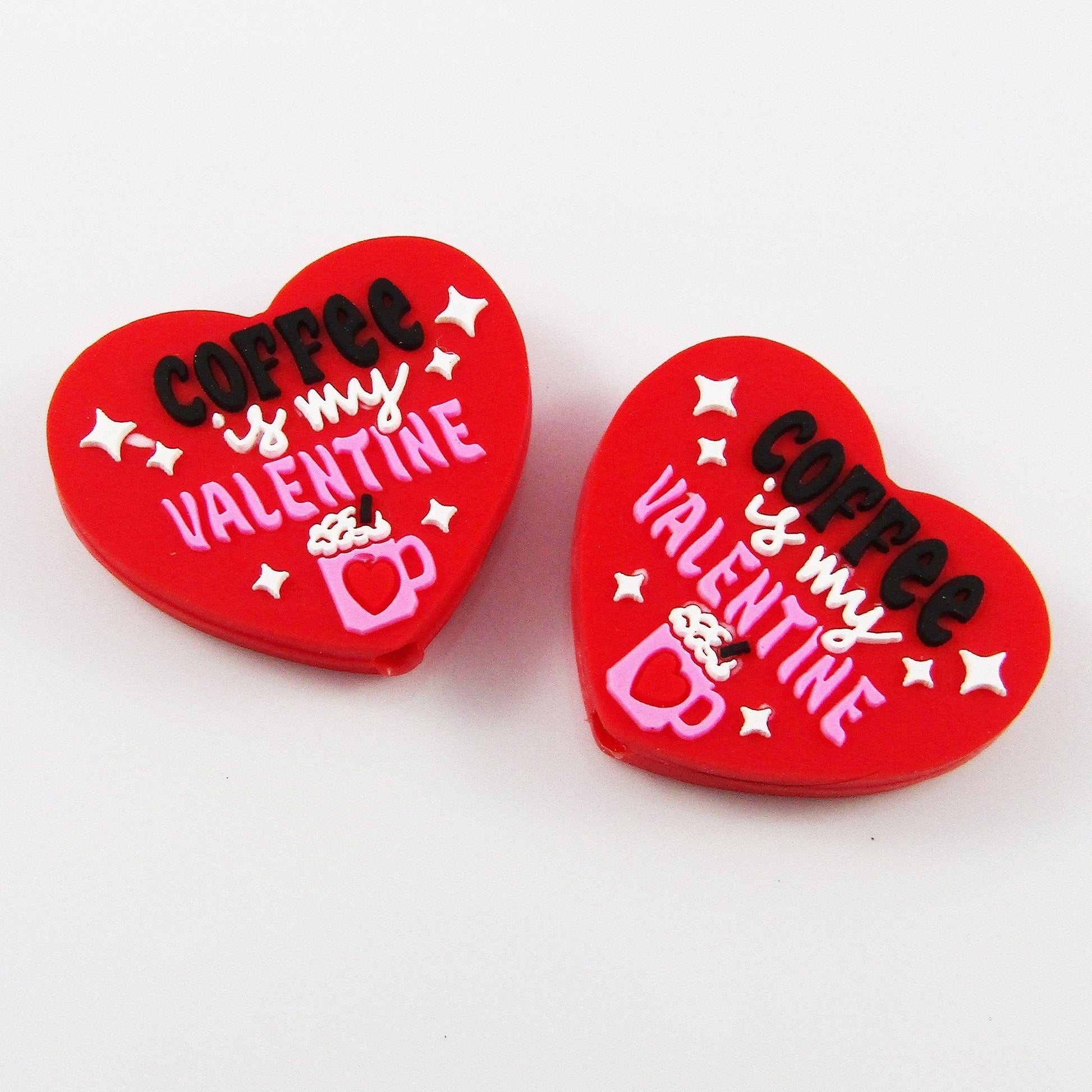 2pcs Coffee is my Valentine Silicone Focal Bead 26x30mm Hole 3mm Pen Keychains