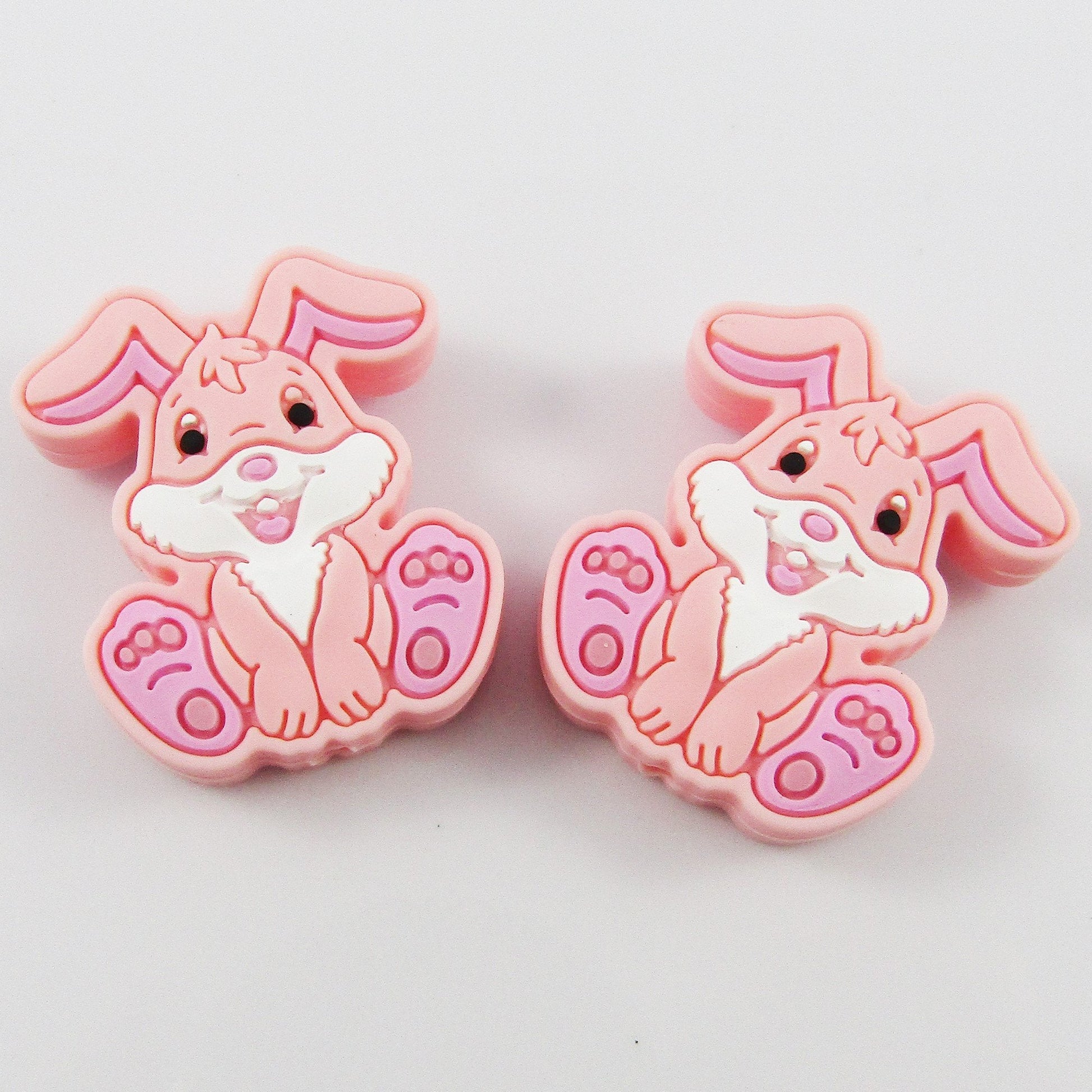 2pcs Easter Bunny Rabbit Silicone Focal Bead PINK 28x24mm Hole 2mm Pen Keychains
