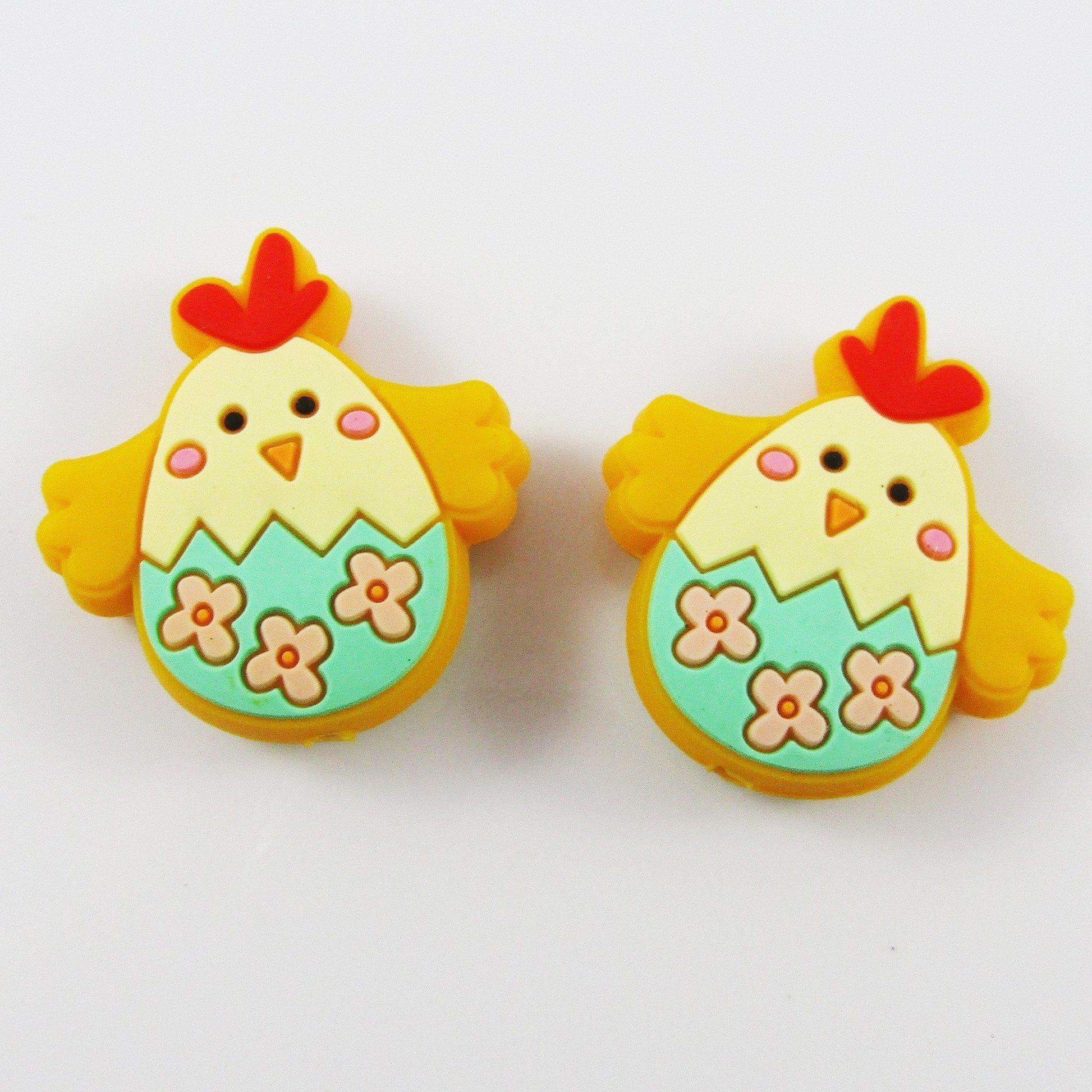 2pcs Easter Chick Silicone Focal Bead 28x26mm Hole 2mm Pen Keychains Lanyard