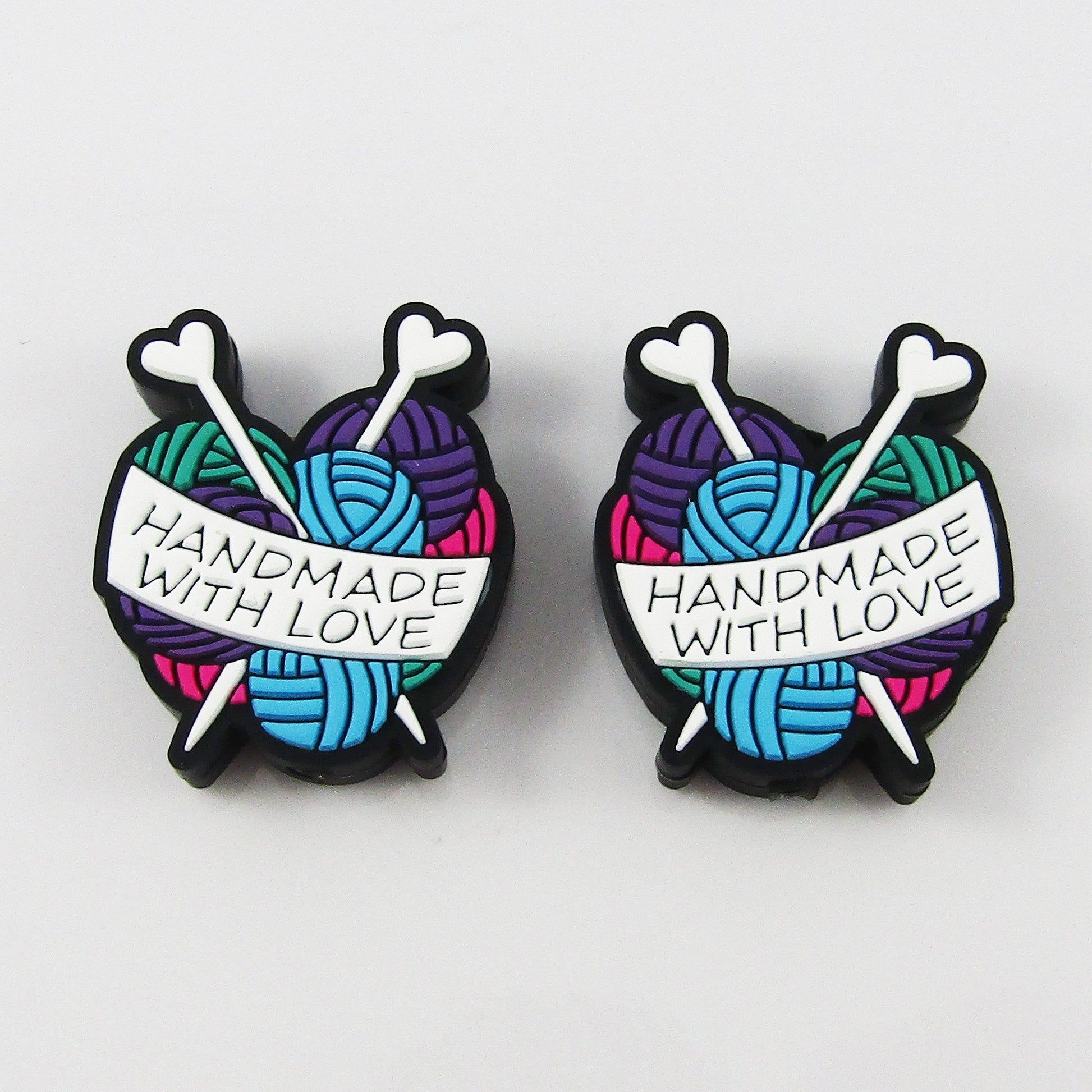 2pcs Handmade with Love Silicone Focal Bead Knitting Yarn 30x26x7.5mm Hole 3.5mm