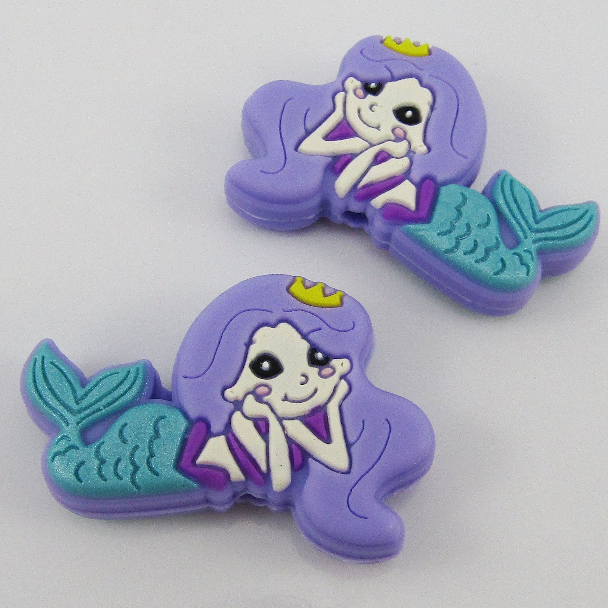 2pcs Mermaid Silicone Focal Bead Lilac 26x37mm Hole 3.5mm Beadable Pen Keychains